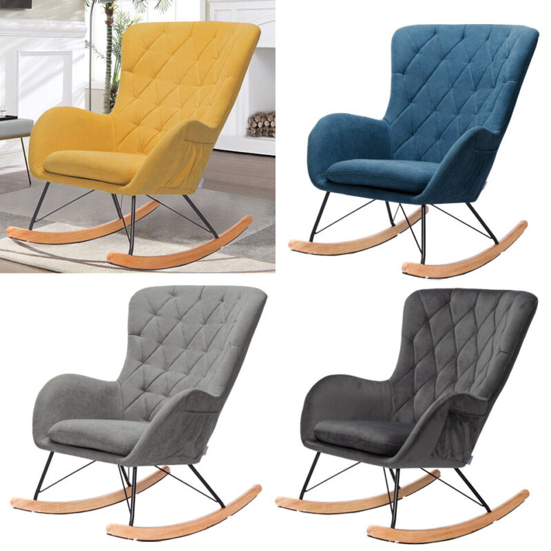 Wing Back Armchair Rocking Chairs Upholstered Recliner Fireside Single Sofa Home