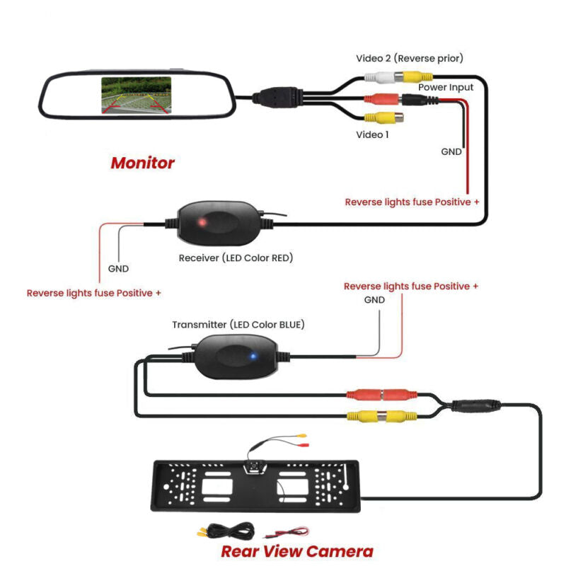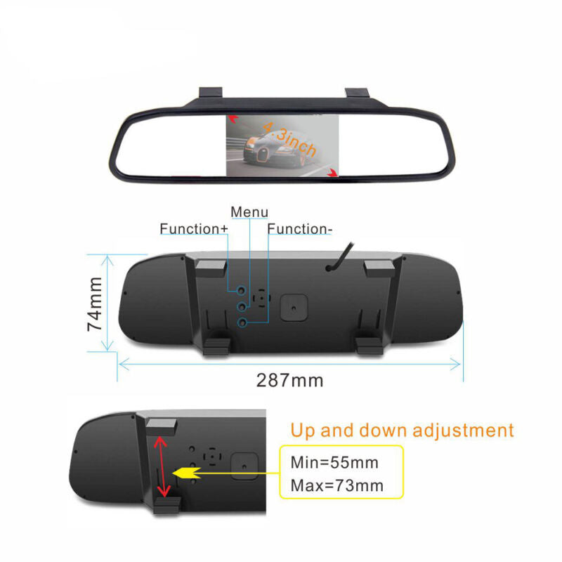 Wireless 4.3" TFT Rear View Mirror Monitor Reversing Parking Camera Number Plate