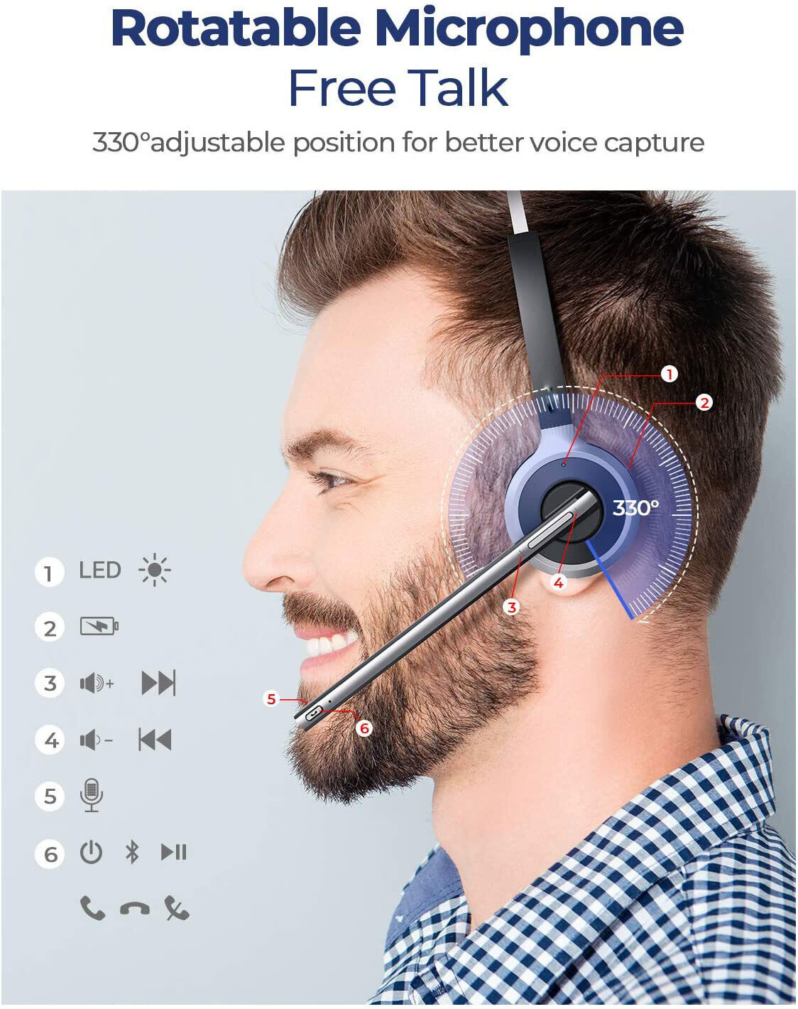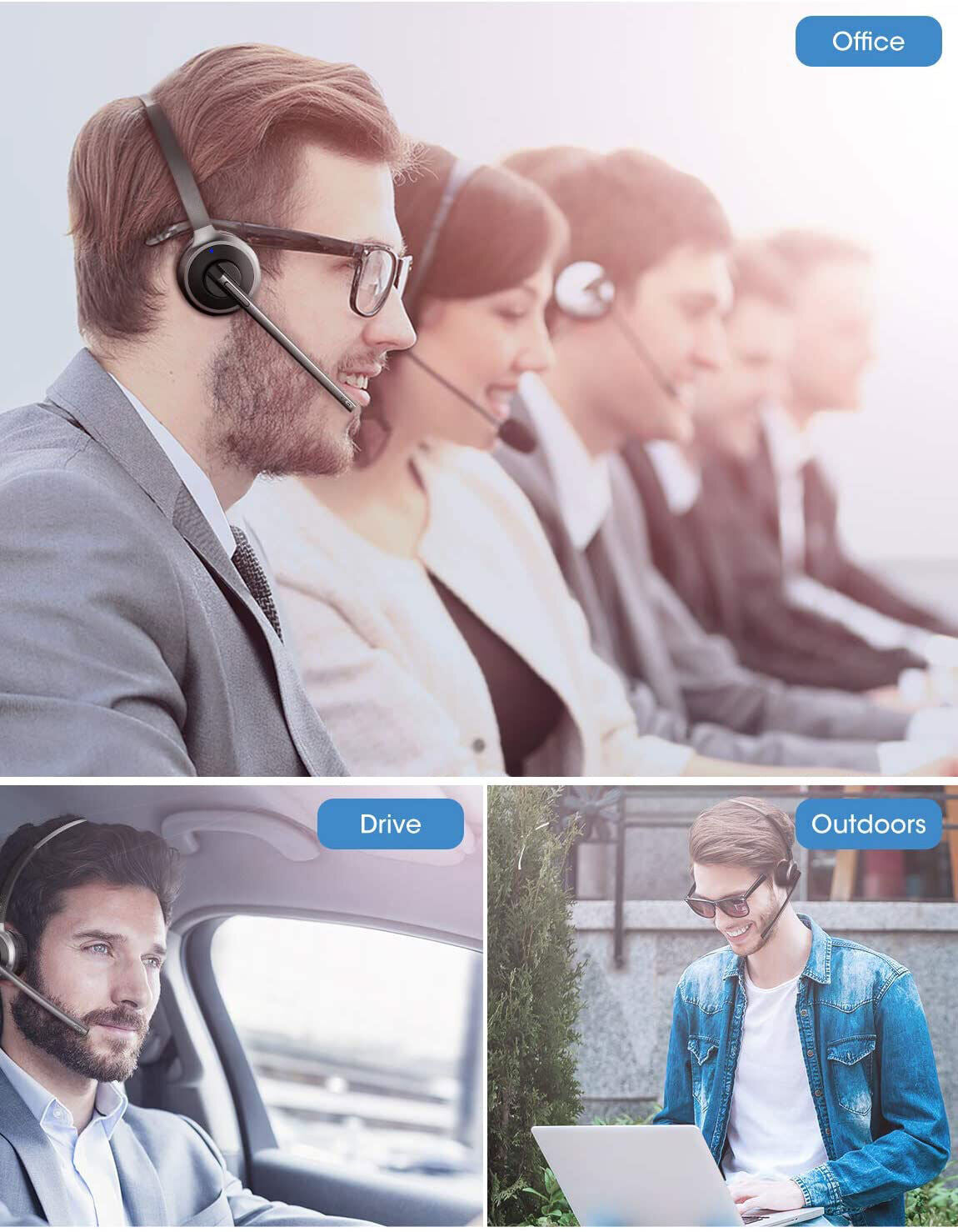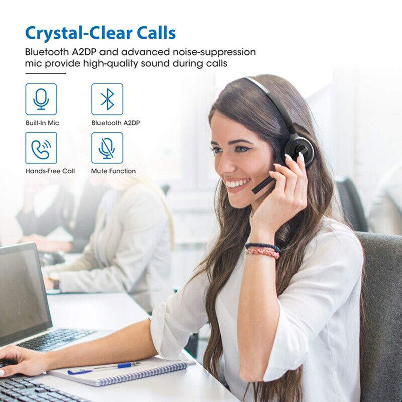 Wireless Bluetooth Office Headset Over Ear for Trucker Drivers Call Center