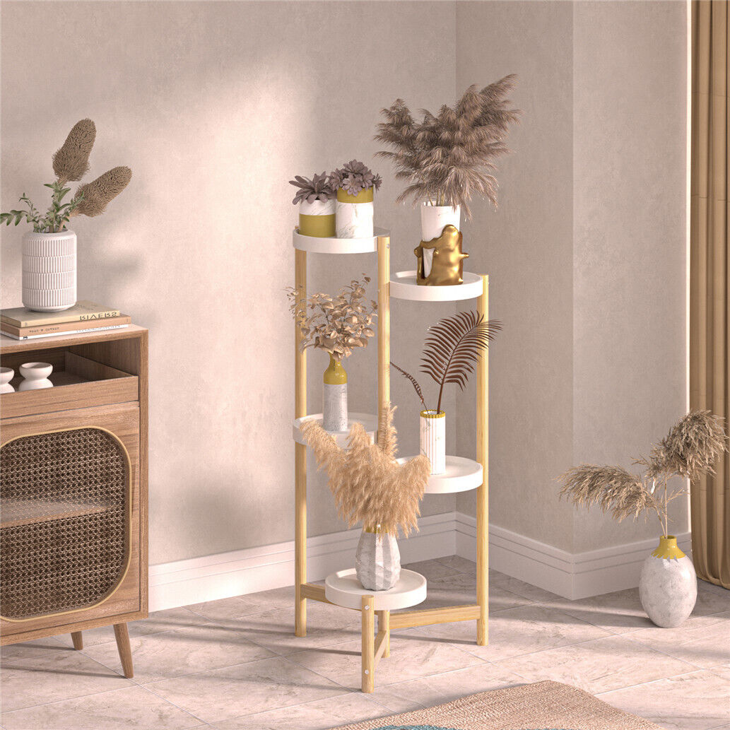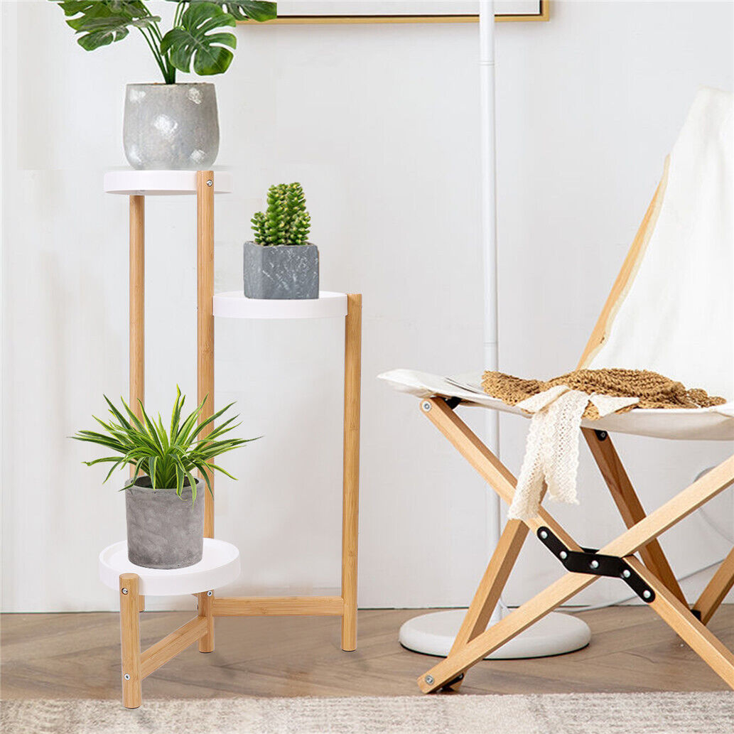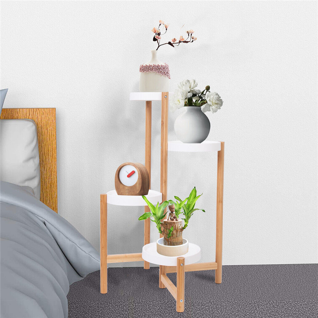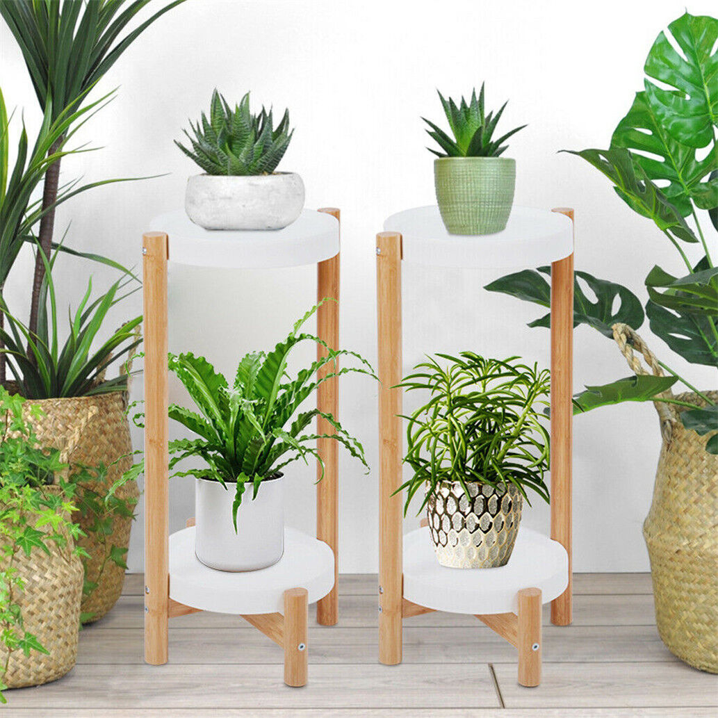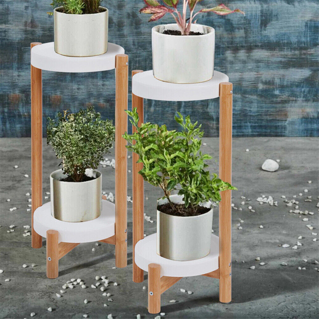 2-5 Tiers Bamboo Plant Stand Corner Flower Pot Holder Display Shelf Rack