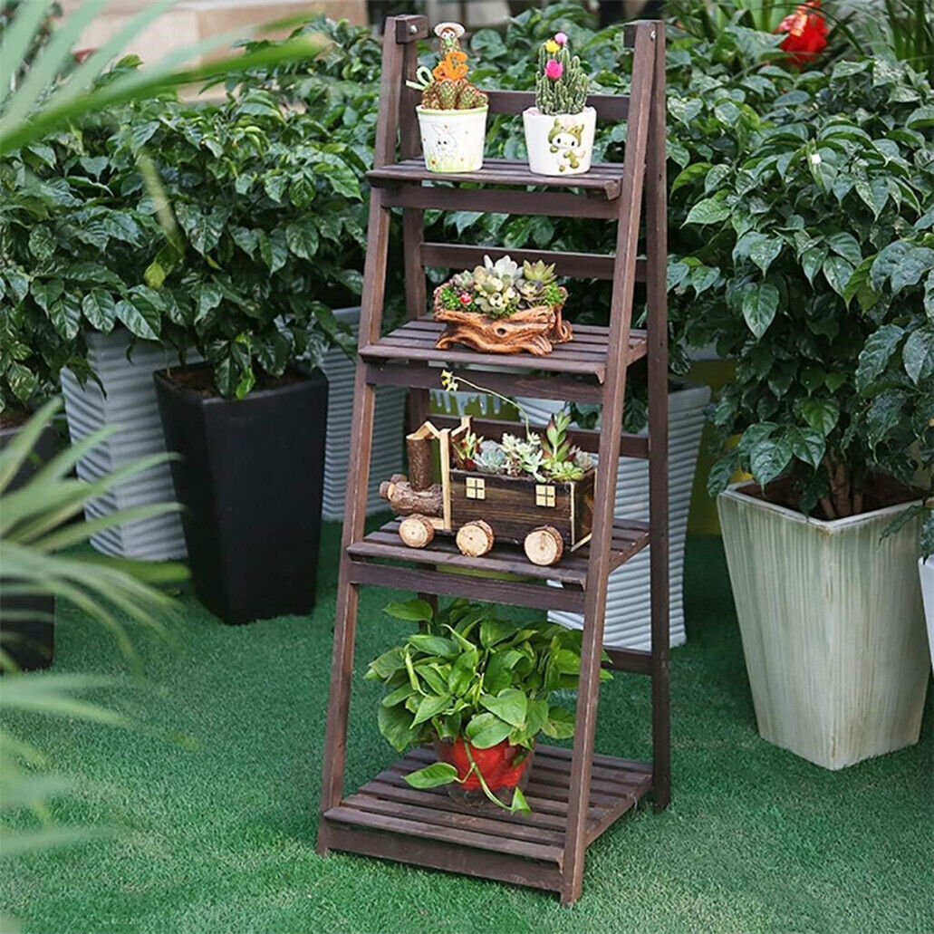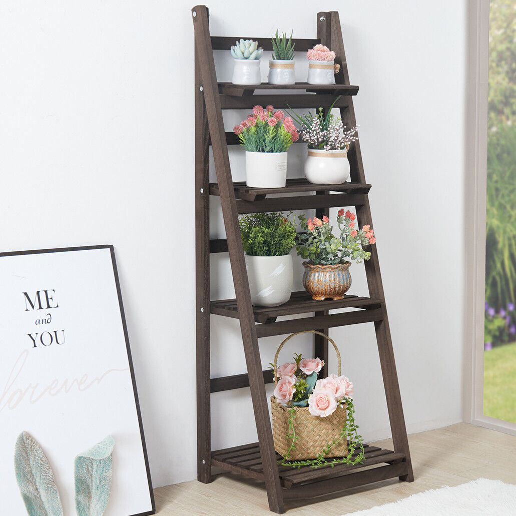 4 Tier Folding Ladder Shelf Bookcase Display Storage Rack Plant Stand