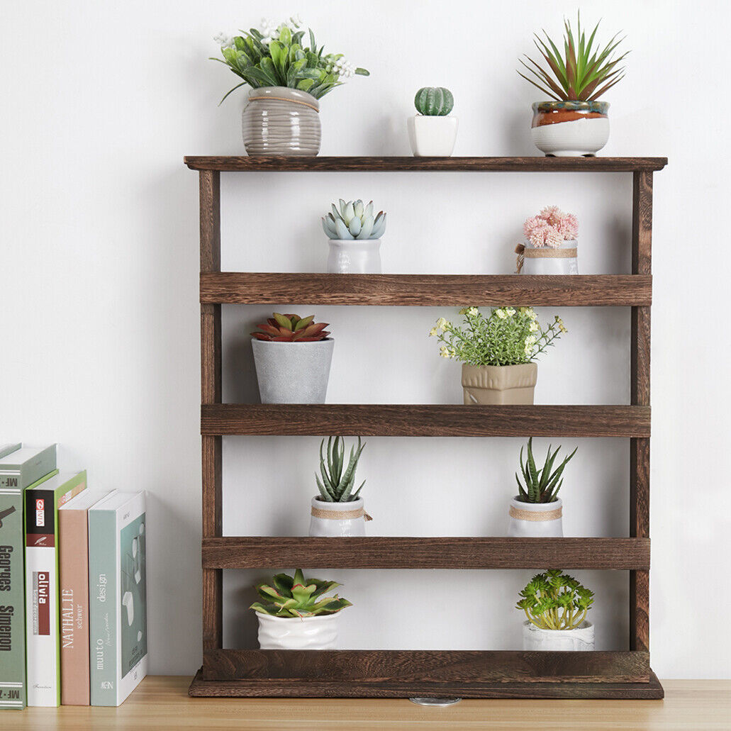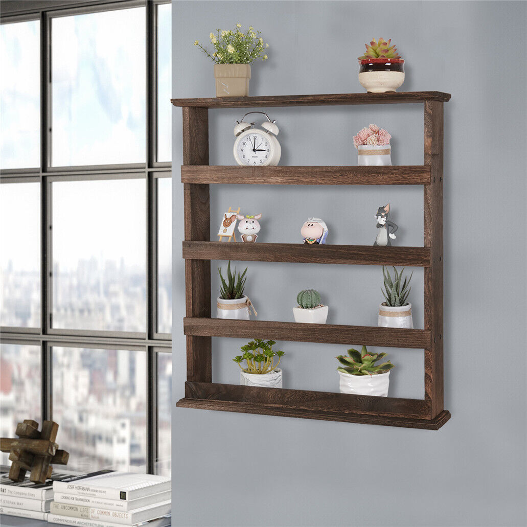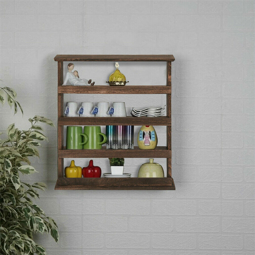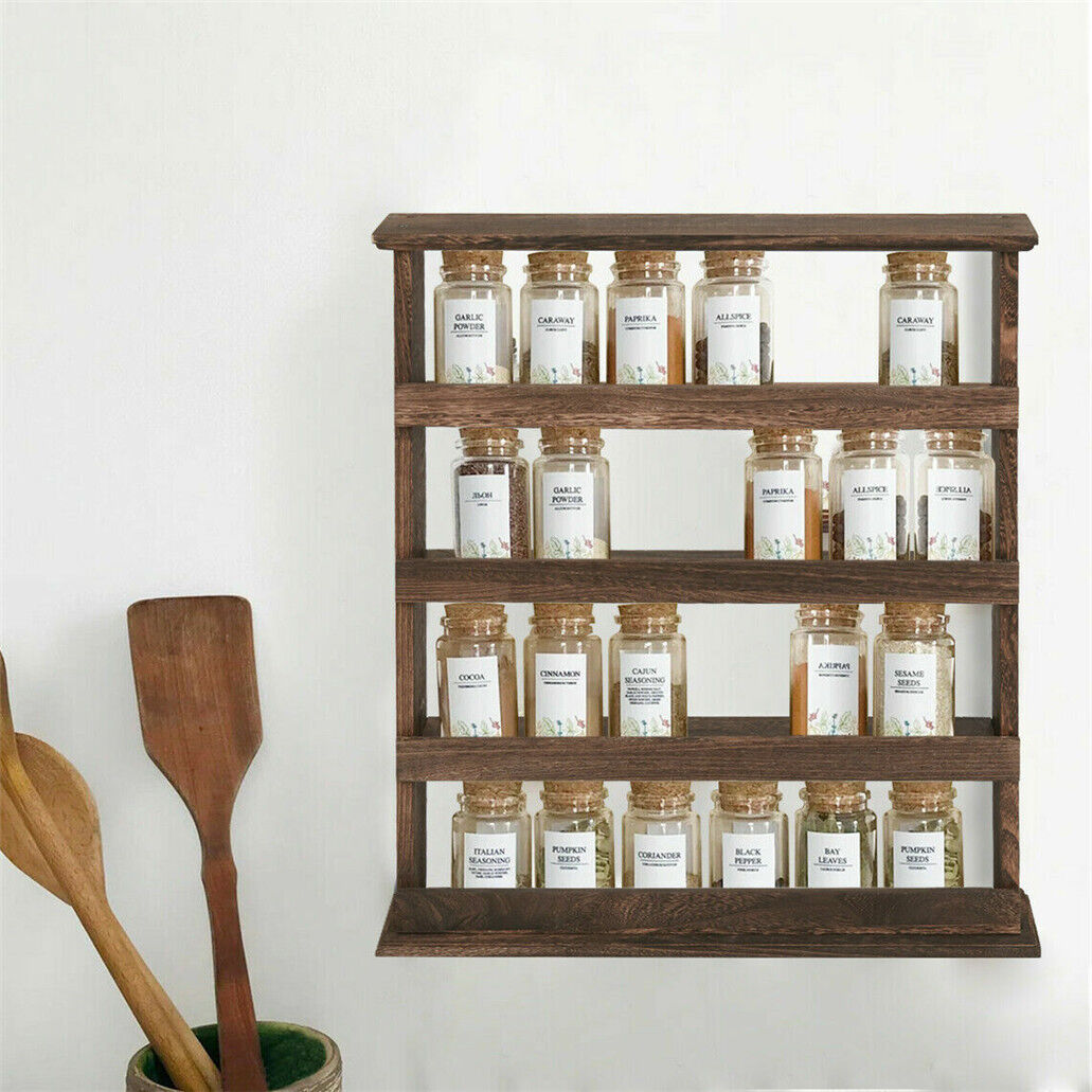 4Tier Wooden Spice Rack Desktop Wall Hanging Shelf Holder Kitchen Cabinet