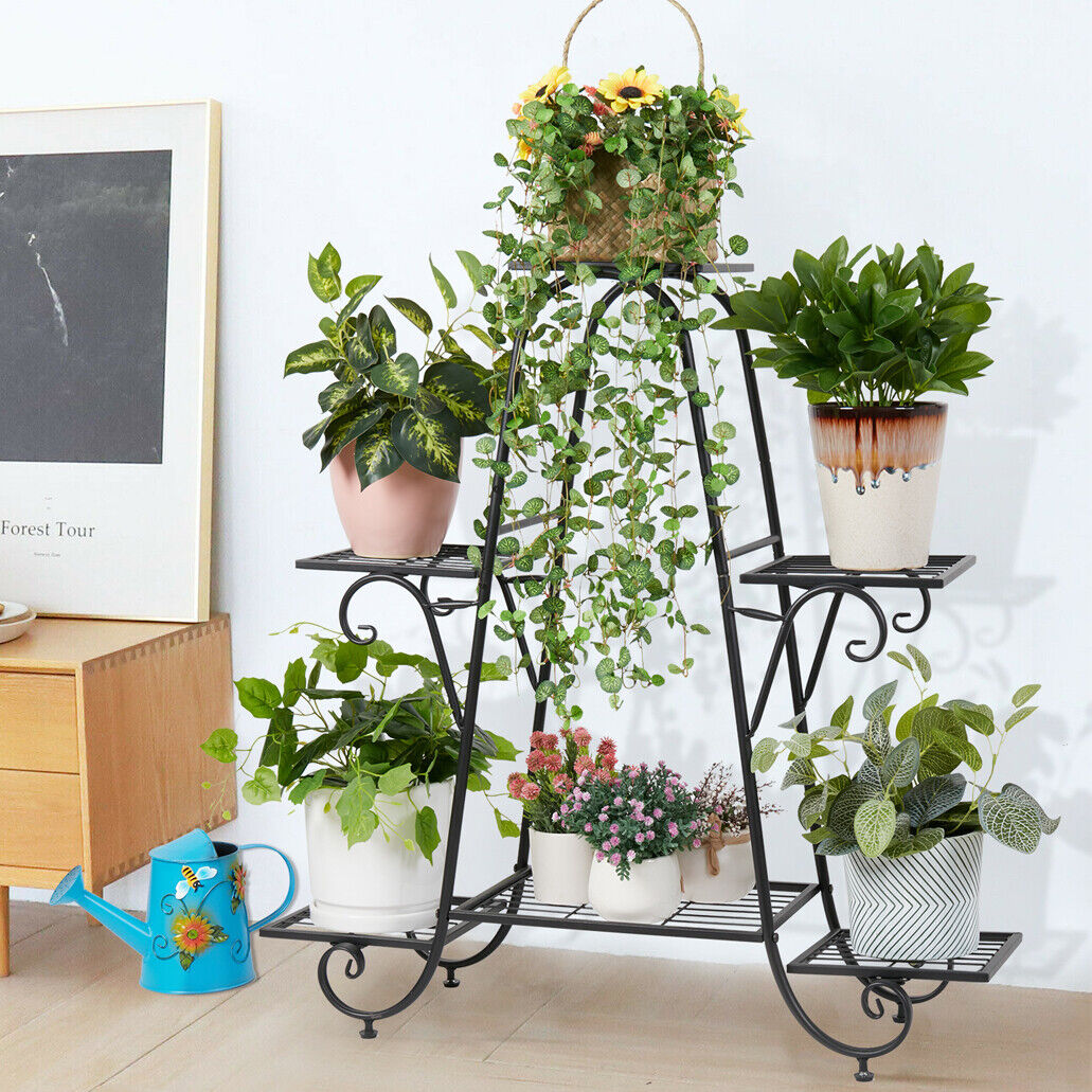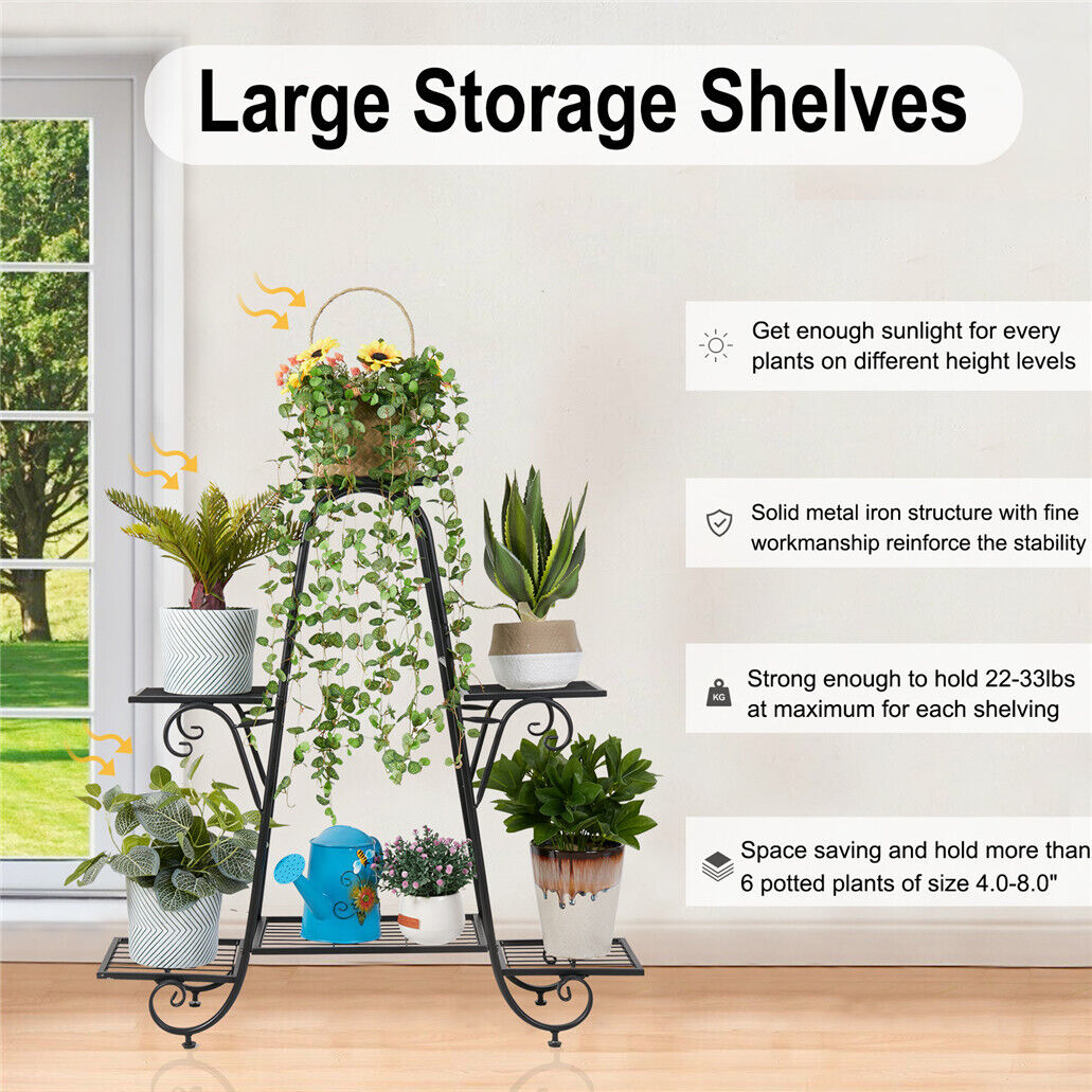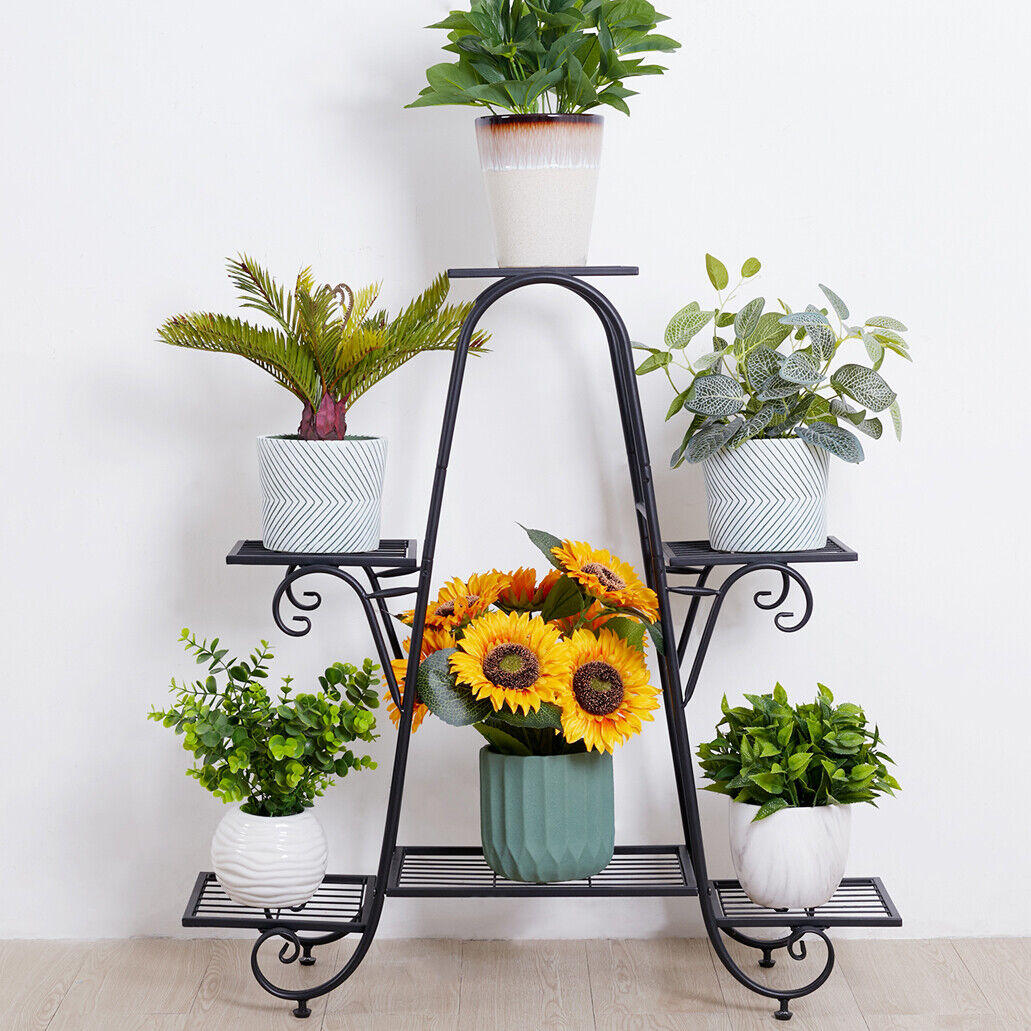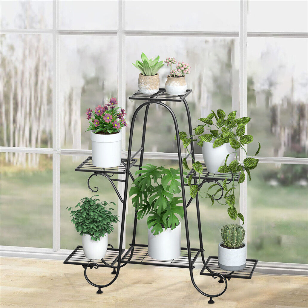 6 Tier Metal Plant Stand 6 Flower Pots Shelf Display Rack Garden Home Dec
