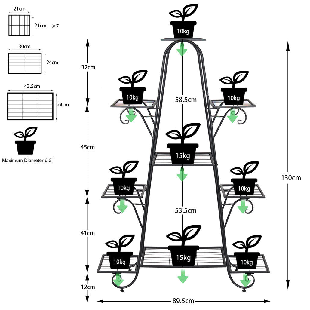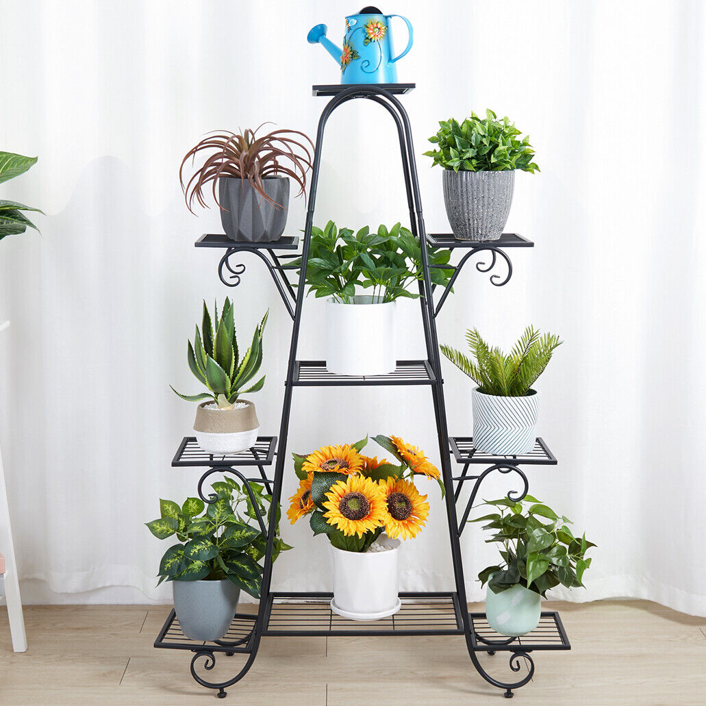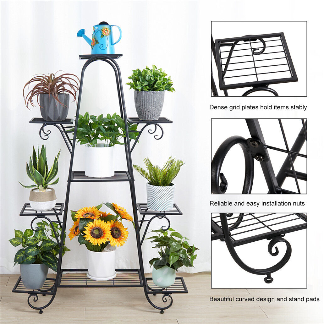 9-Tier Metal Plant Stand Garden Shelves Pot Holder Display Rack Storage