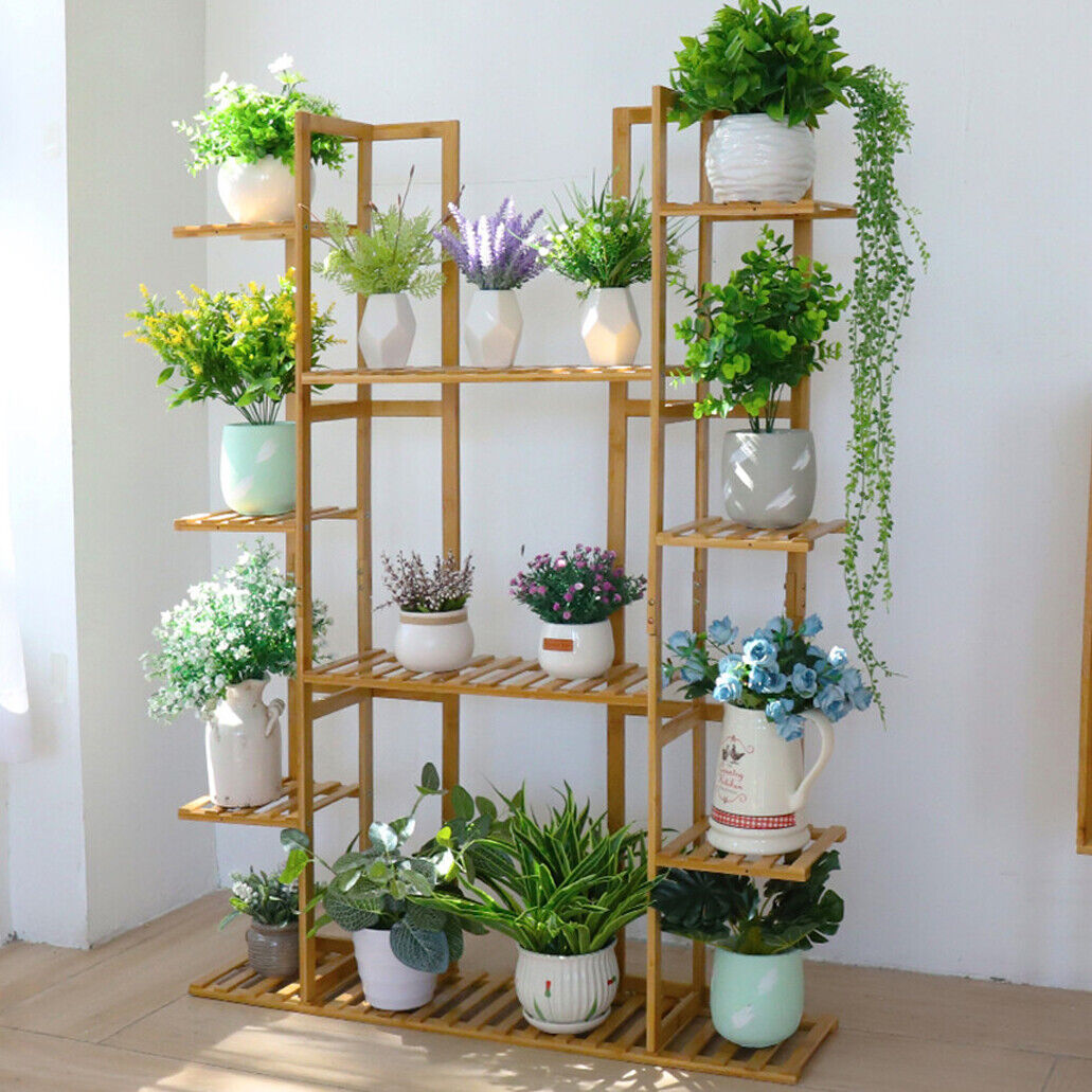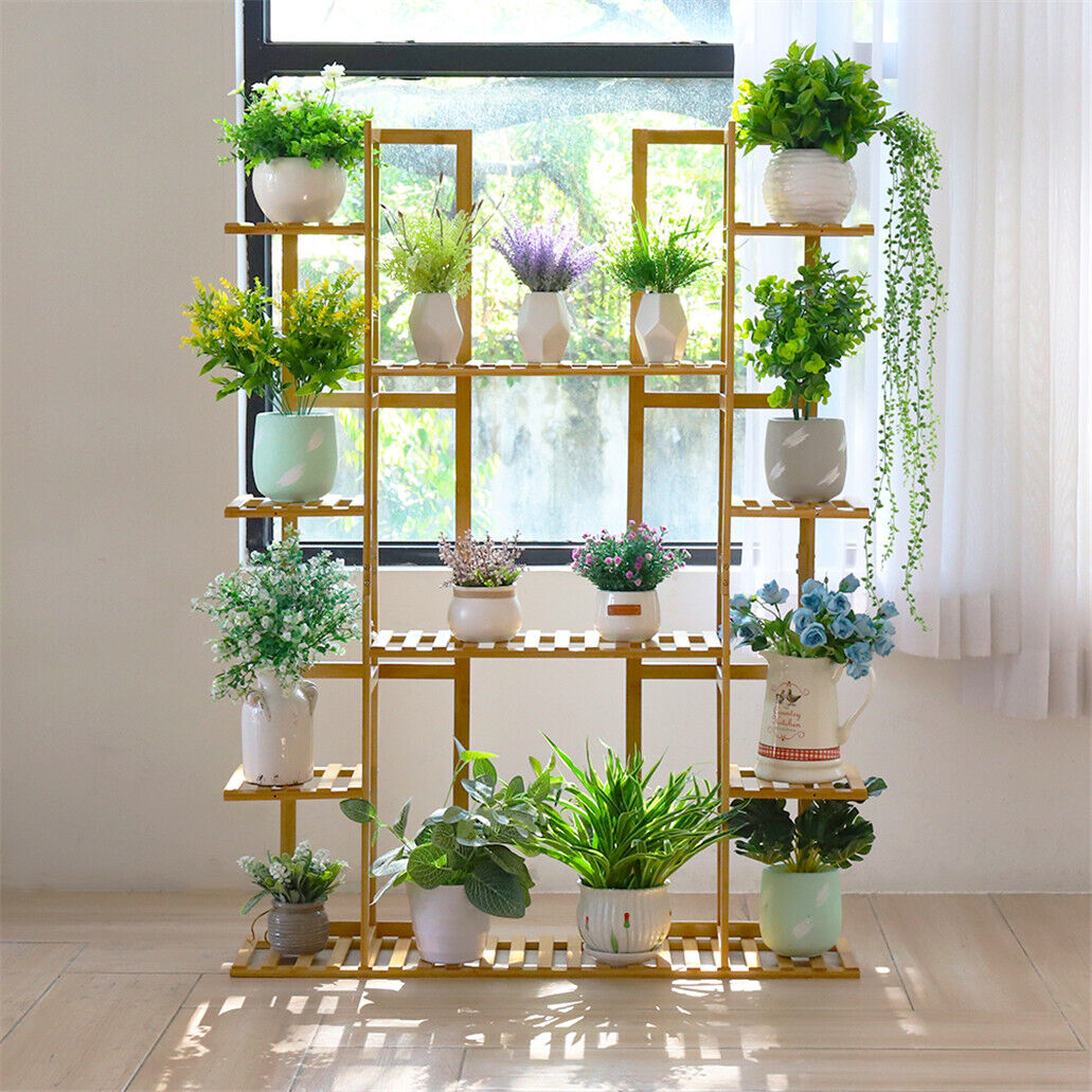 Bamboo Plant Stand 17 Pot Flower Display Rack Corner Garden Shelf Holder