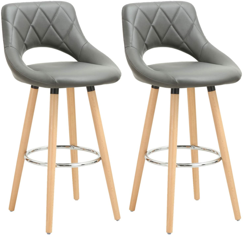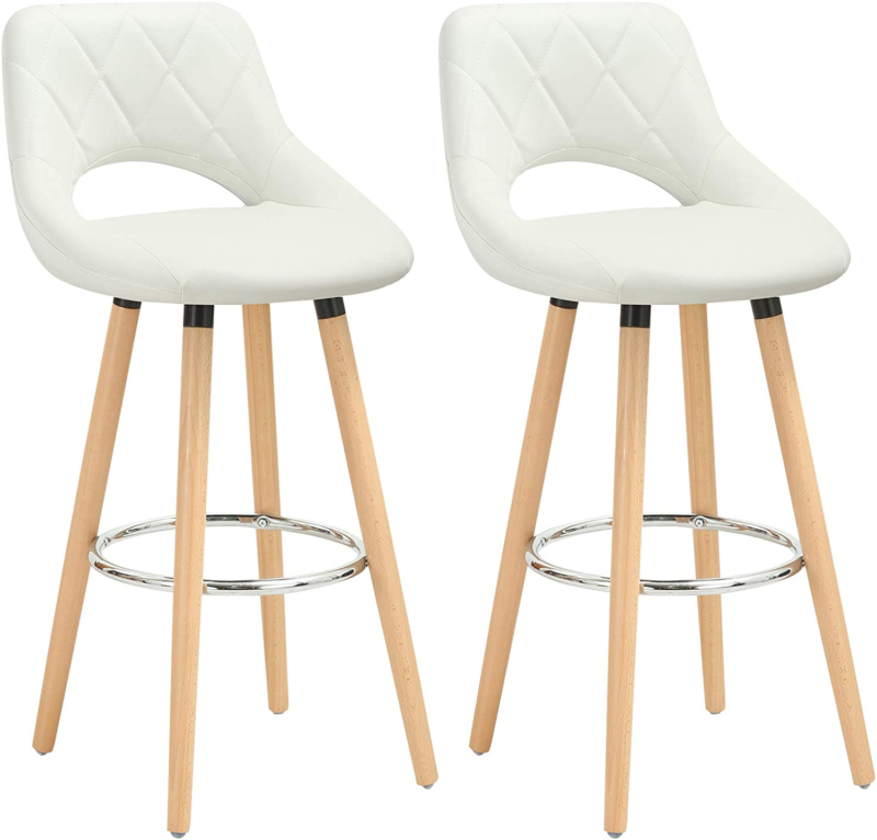 2 pcs Bar Stools Breakfast Kitchen Counter High Stools Wood Legs Barstools
