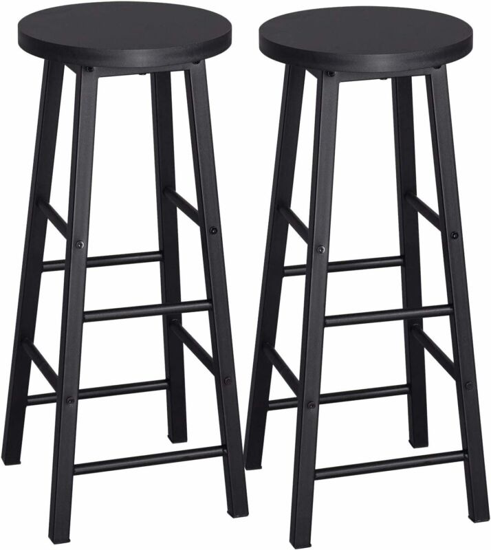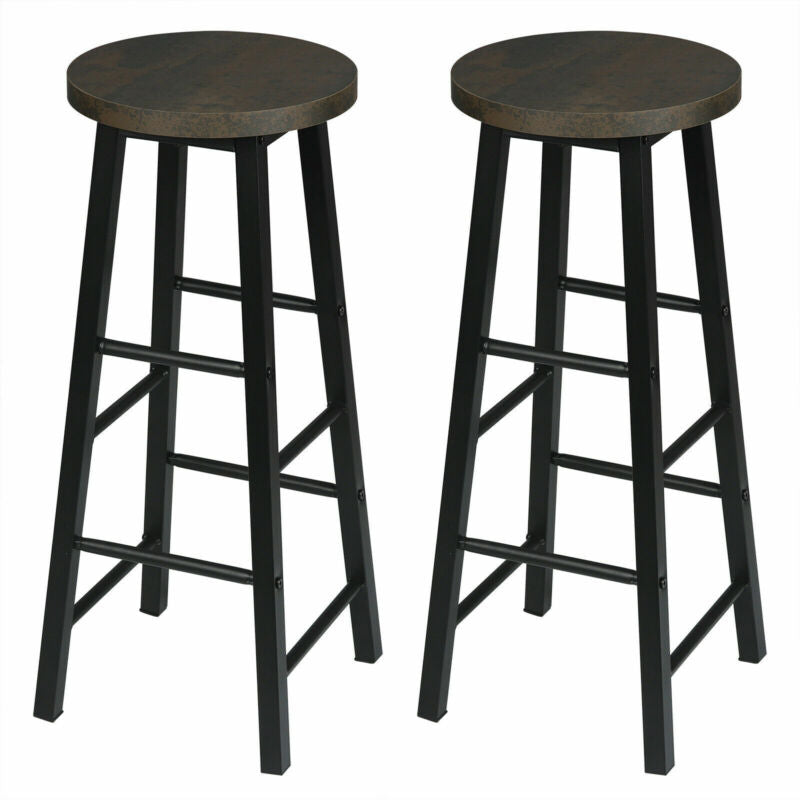 2 x Bar Stools Retro Breakfast Kitchen Bar High Chairs MDF Seat Metal Legs