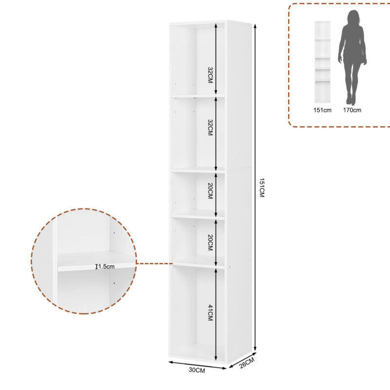 5 Tier Wooden Bookcase Shelving Display Shelves Storage Unit Wood Shelf