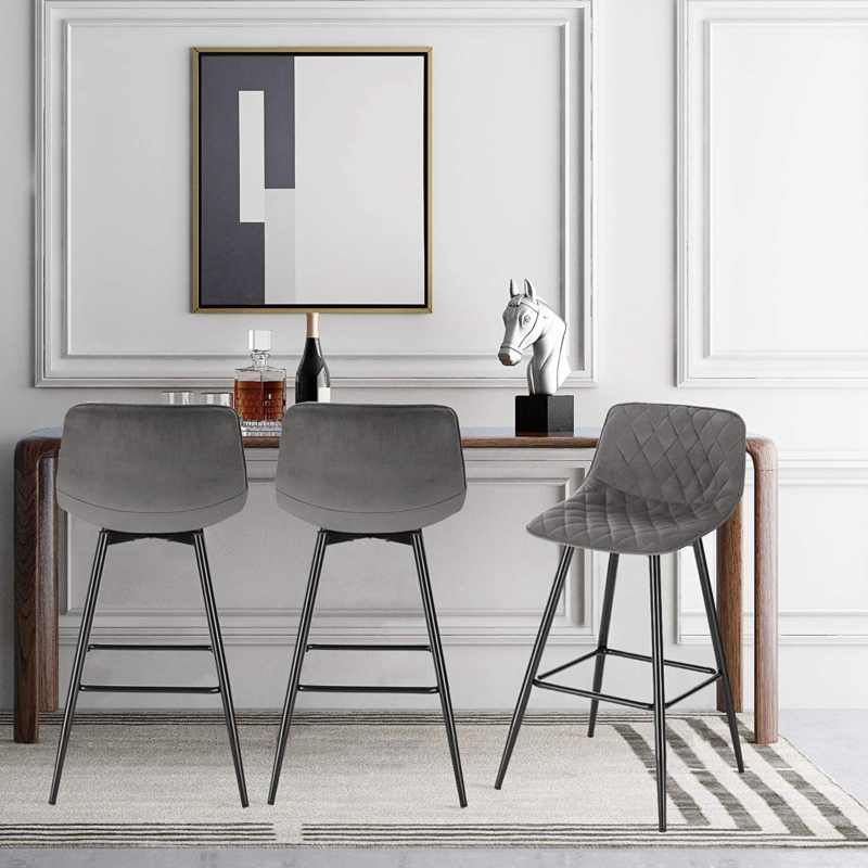 Bar Stools 2 PCS Soft Velvet Seat Breakfast Bar Counter Kitchen Chairs