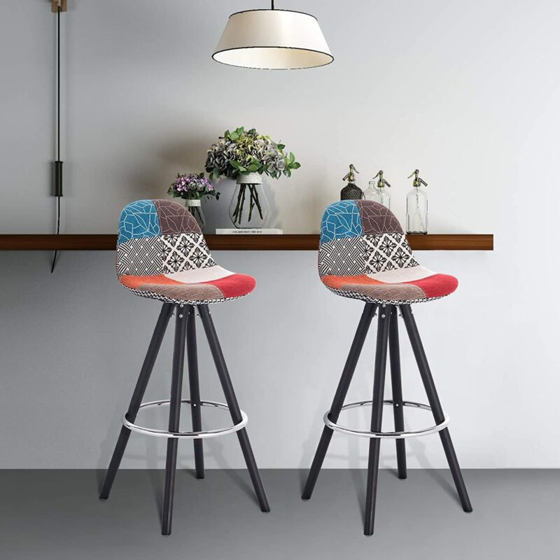 Set of 2 Breakfast Kitchen Bar Stools Backrest High Bar Chair Four Colours