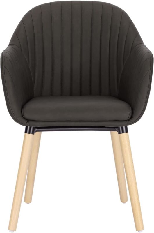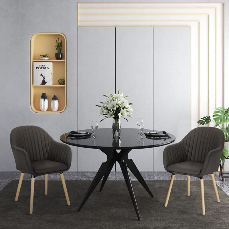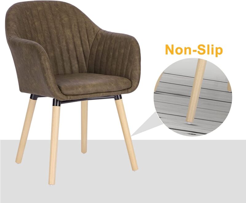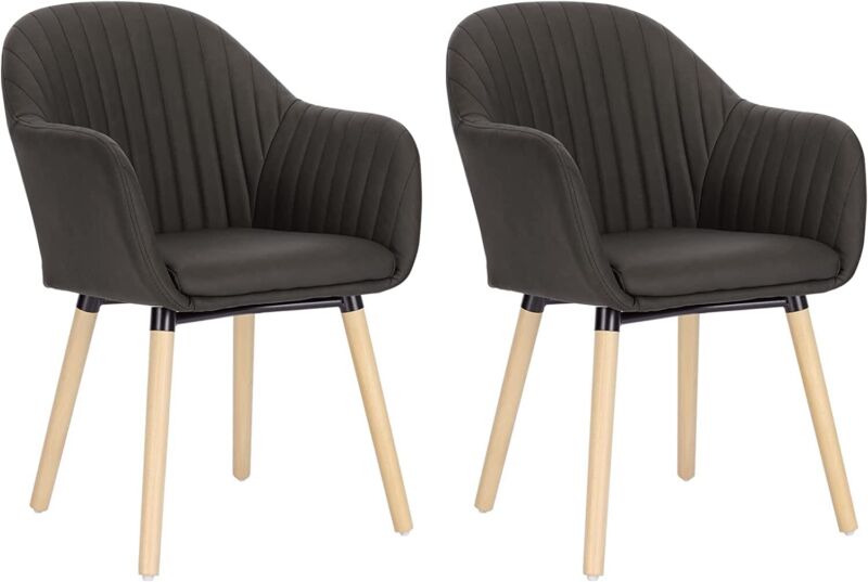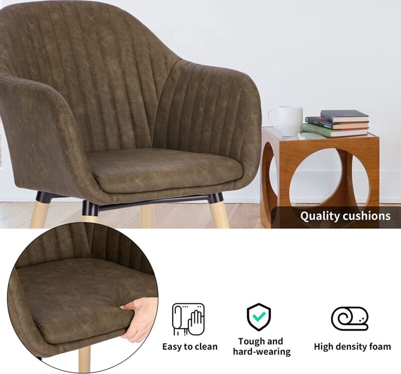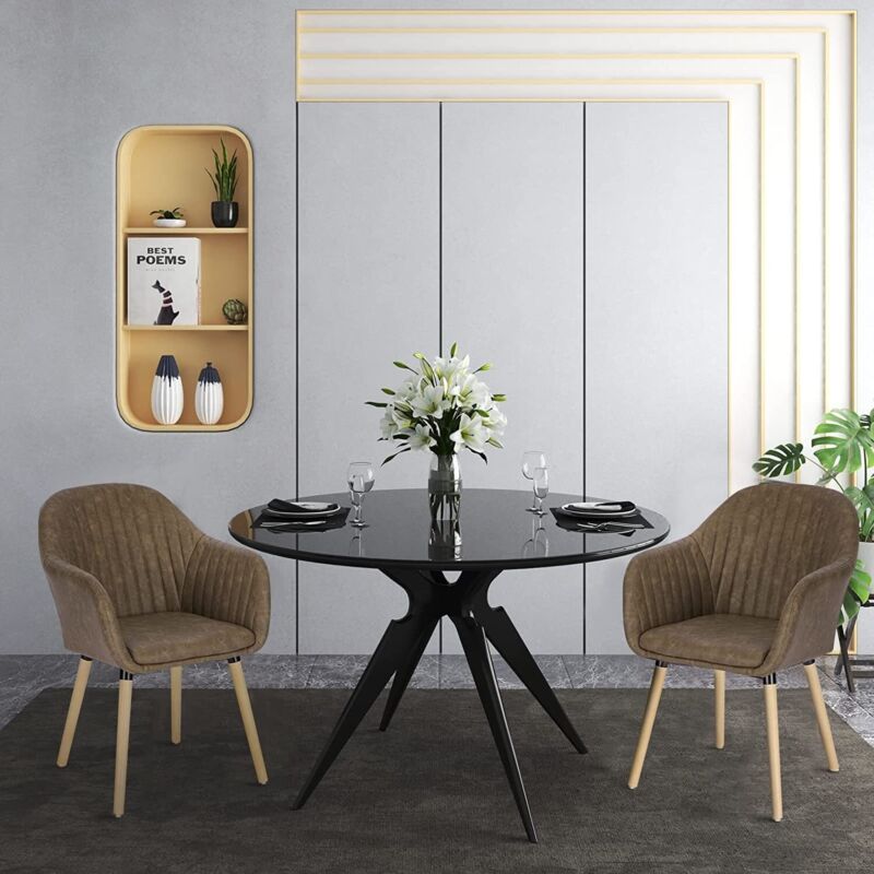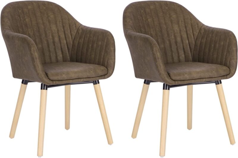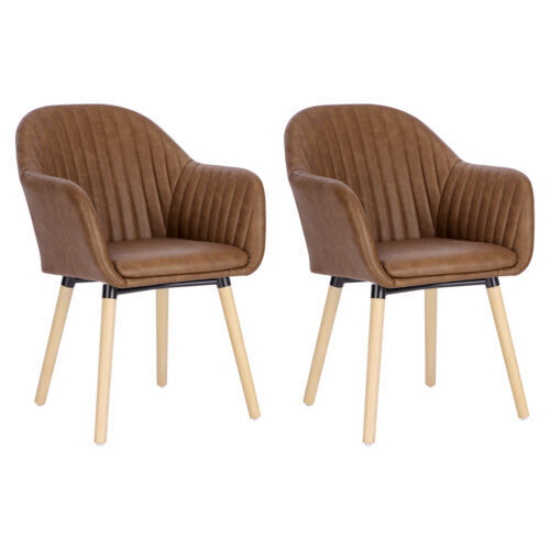 Set of 2 Kitchen Dining Chairs Faux Leather Armchairs Wood Leg Home Office