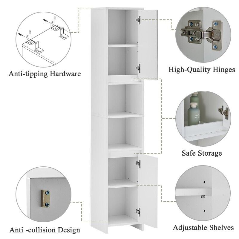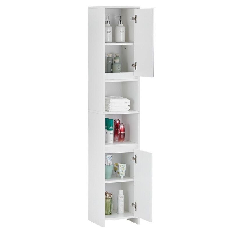 Wood Bathroom cabinet mirror 2 Door 6 Shhelf Storage Unit Free Standing modern