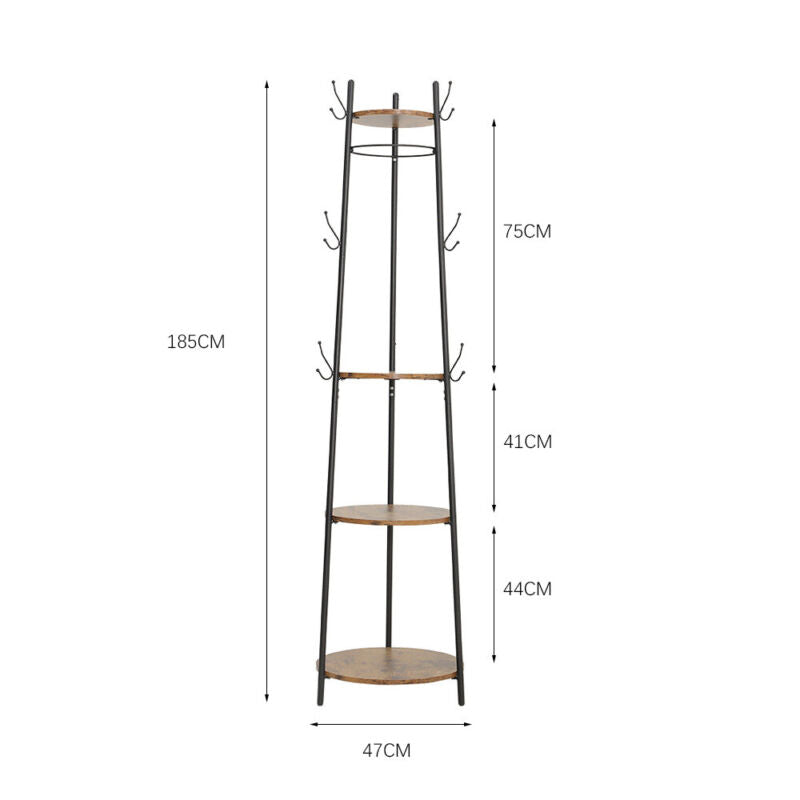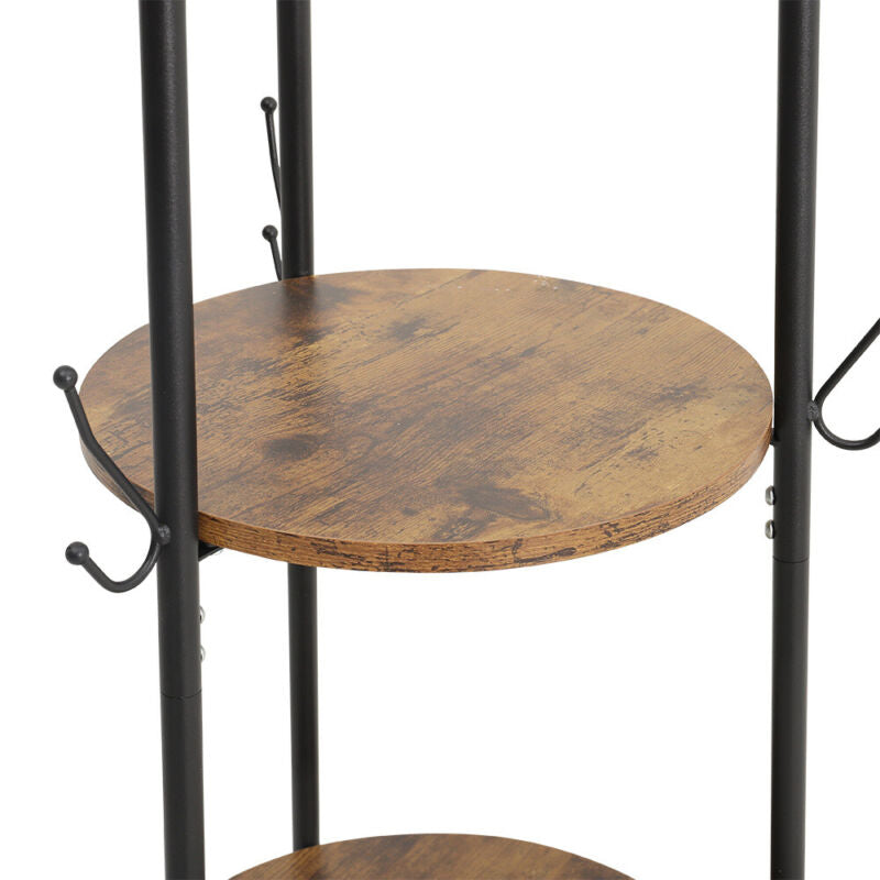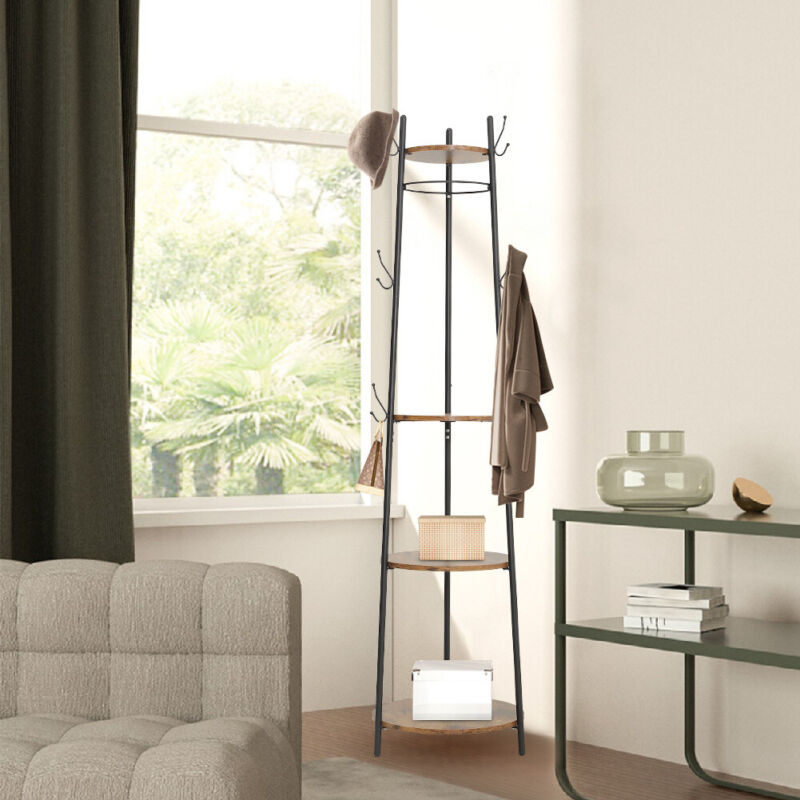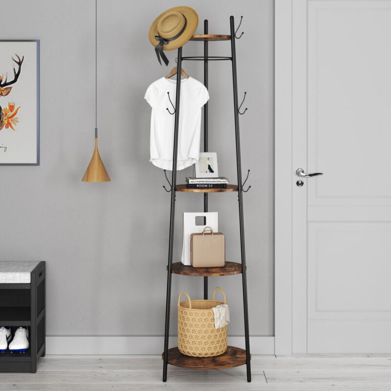 Wood Coat Rack Stand Hallway Tree Clothes Garment Hanger w/ 4 Shelf & 6 Hooks UK