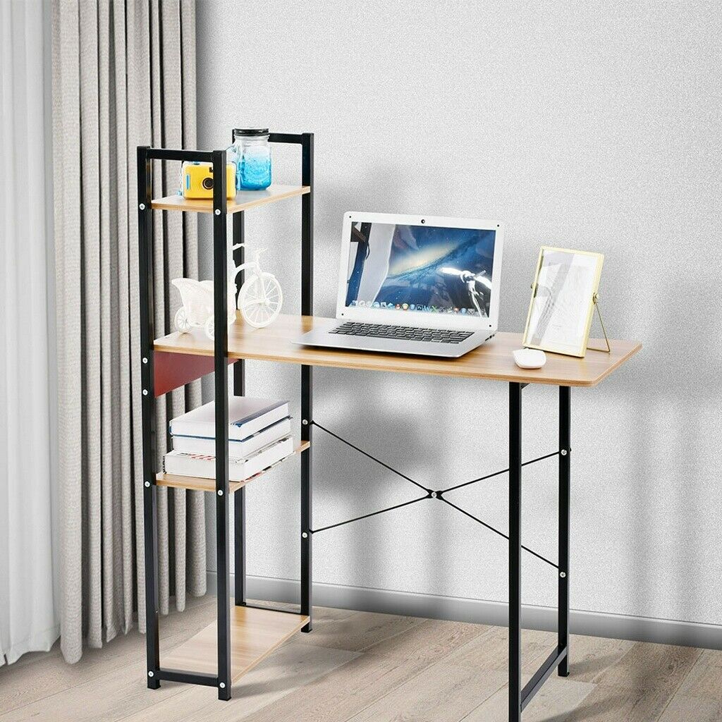 Wood Computer Desk Laptop PC Table Home Office Study Simple Workstation Shelves