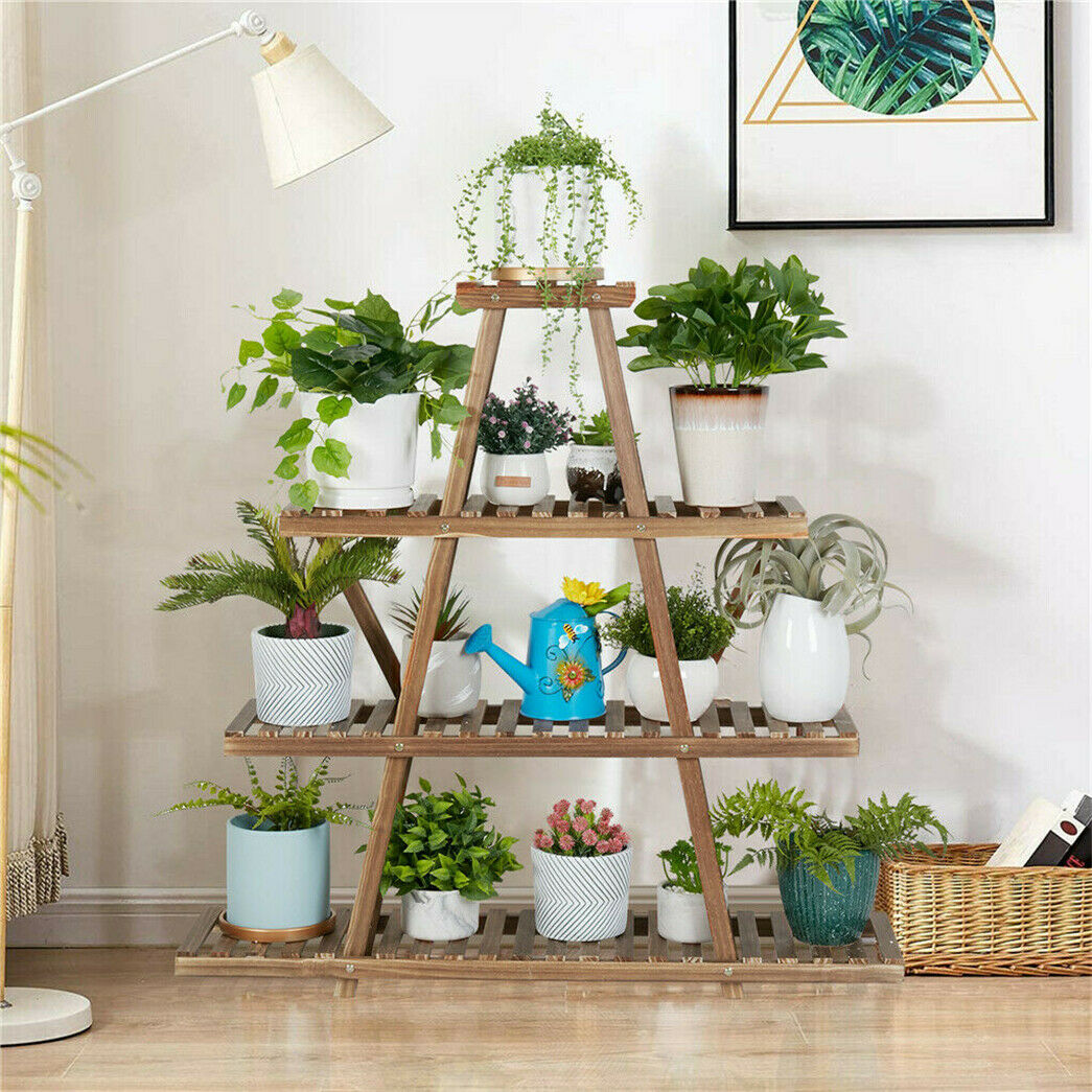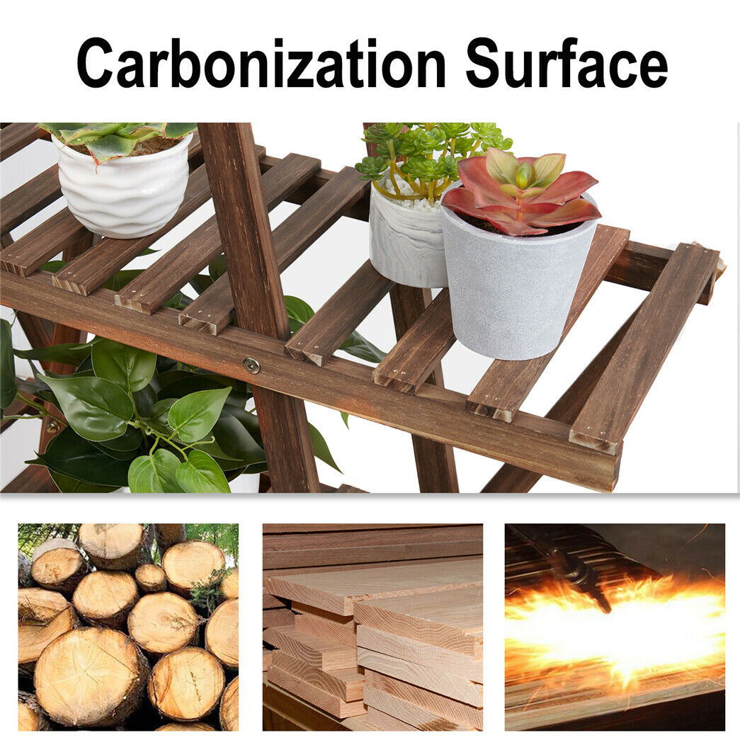 Wood Flowerbed Ladder Shelf Stand Plant Flower Pot Display Rack Living Room Home