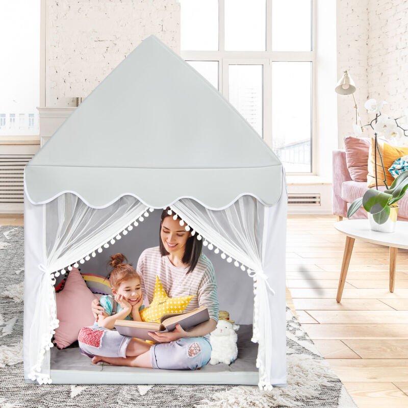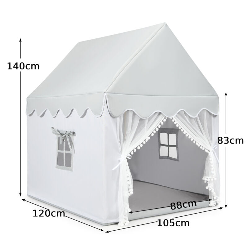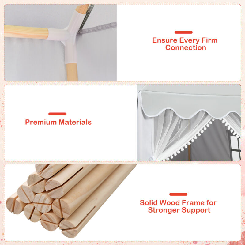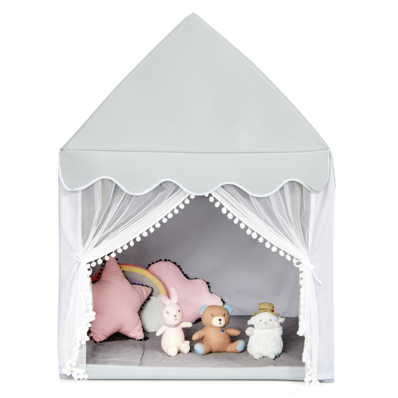 Wood Frame Large Playhouse Kids Toddler Castle Play Tent W/ Washable Mattress