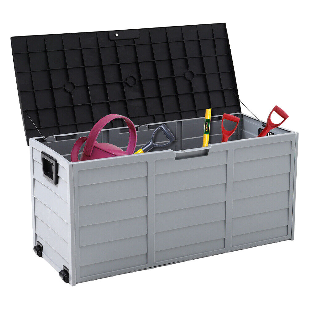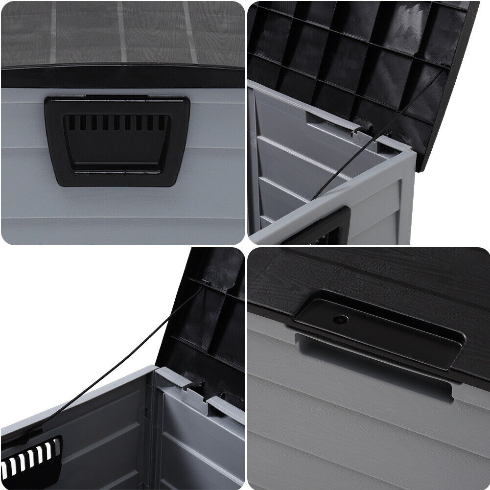 Wood Grain Design Outdoor Plastic Garden Storage Box Outdoor Chest Deck Box Lid