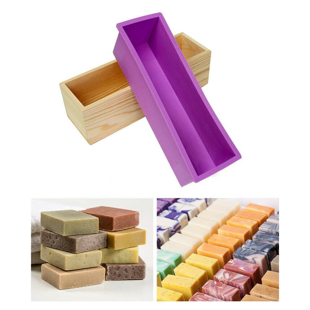 Wood Loaf Soap Mould with Silicone Mold Cake Making Wooden Box 1.2kg soap