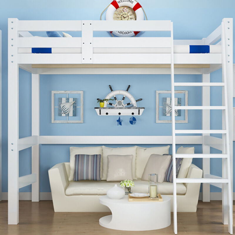 Wood Pine Cabin Bed Frame High Sleeper Boys Girls Bunk Sleepstation with Ladder