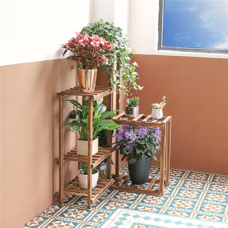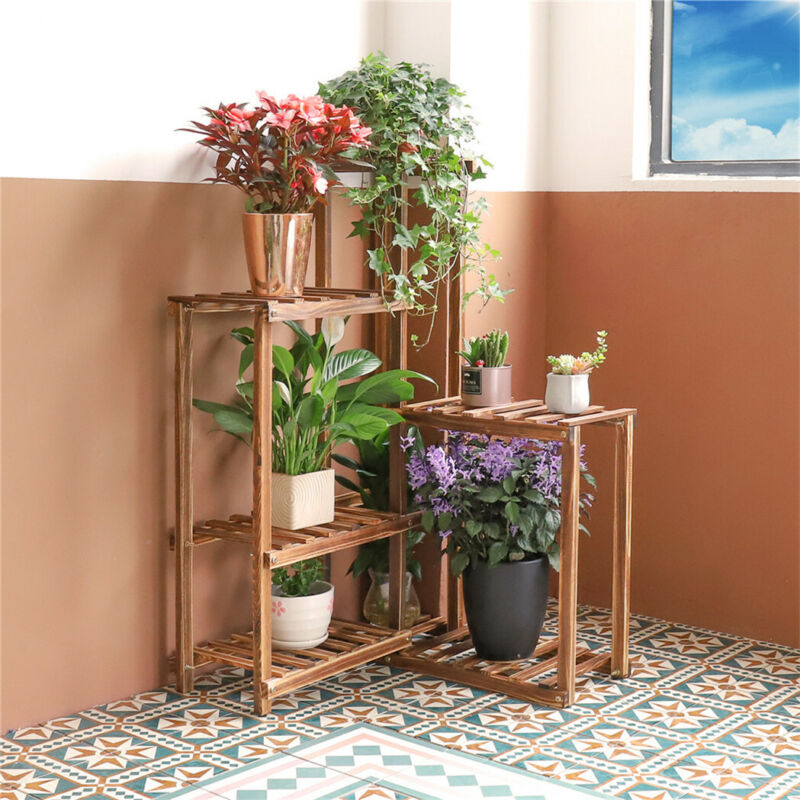 Wood Plant Stand Floral Design Step Style 4 Tier Corner Shelf Flower Planters Ho