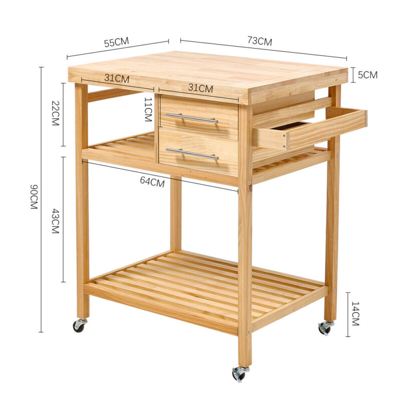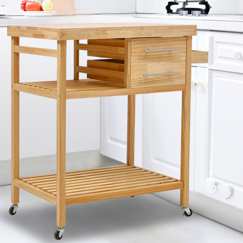 Wood Portable Kitchen Storage Cart Trolley on Wheels Bar Serving Cart Unit Home