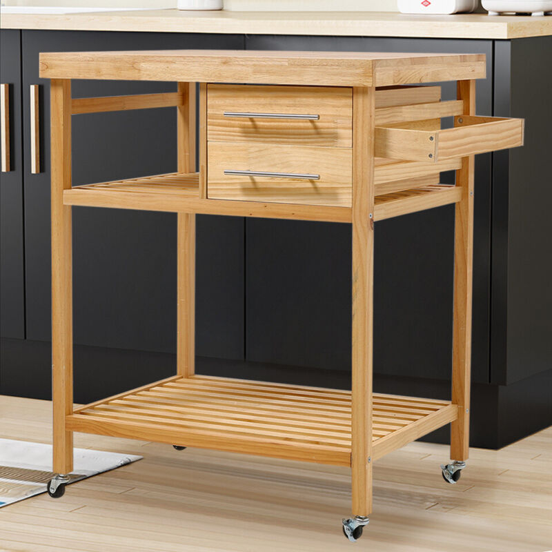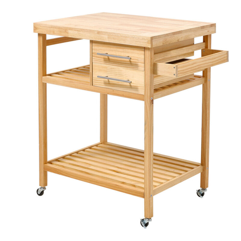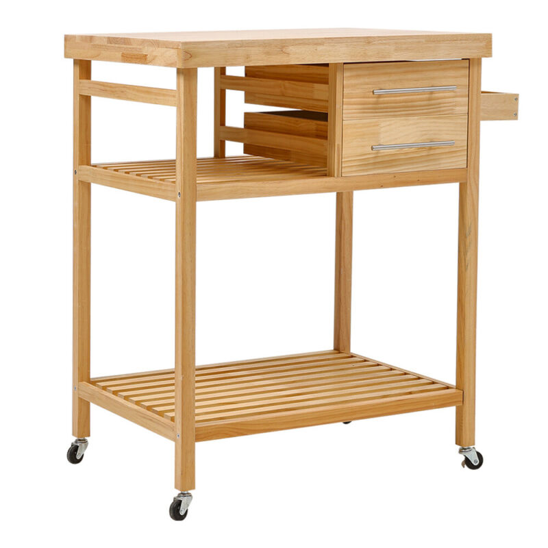 Wood Portable Kitchen Storage Cart Trolley on Wheels Bar Serving Cart Unit Home