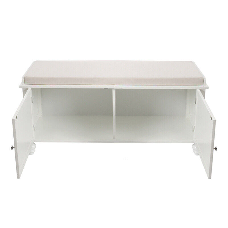 Wood Shoe Bench Cushioned Ottoman Storage Unit Hallway Shoes Changing Seat Chair