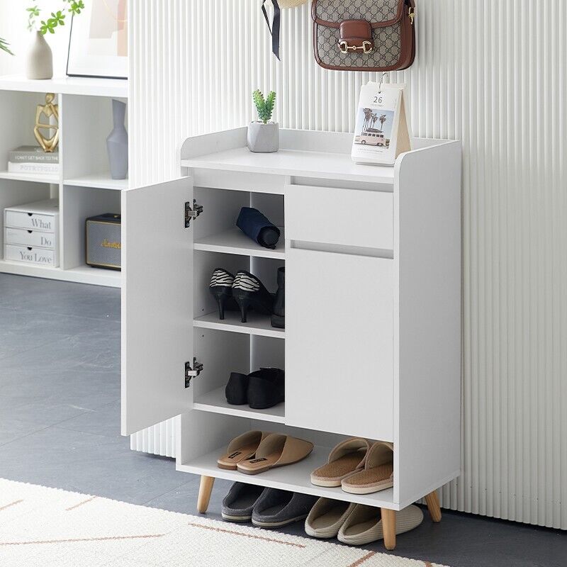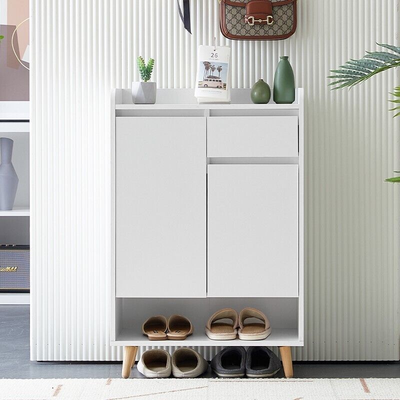 Wood Shoe Cabinet Rack Storage 2 Door 1 Drawer Cupboard 4 Shelf Furniture
