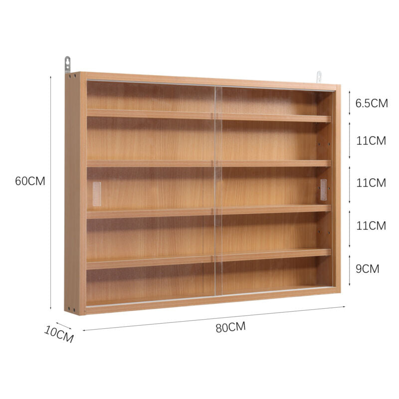 Wood Wall Cupboards Slim 5 Shelves Glass Display Wall Mount Cabinet Models Shelf