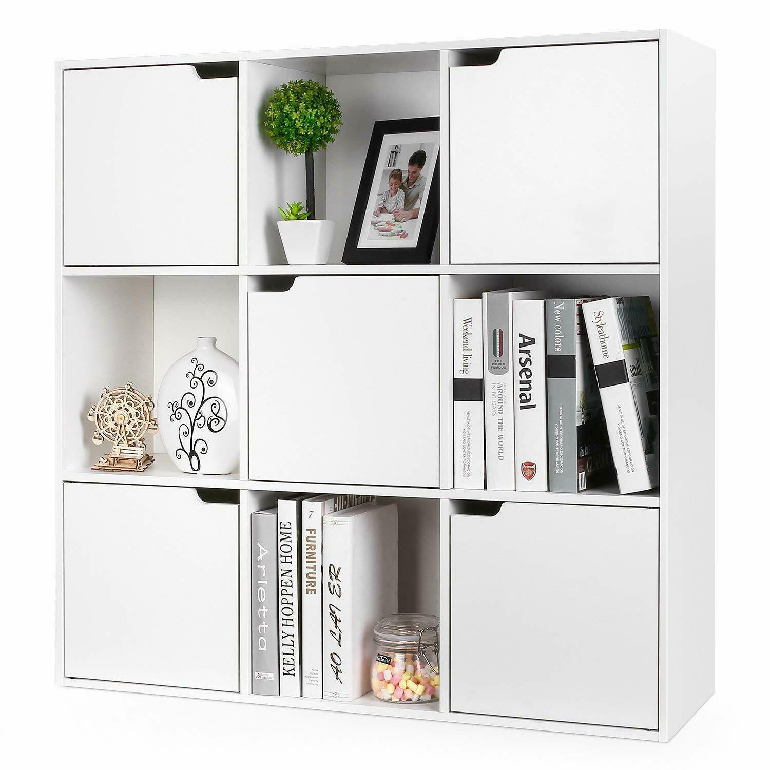 Wooden 9 Cube Storage Unit Display Bookshelf Cupboard Doors Bookcase Shelving UK