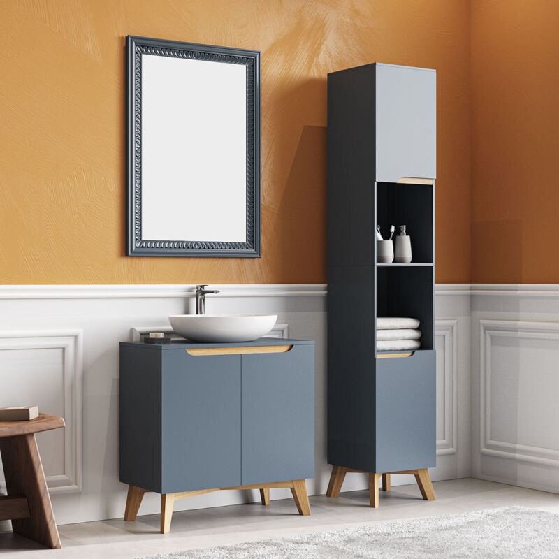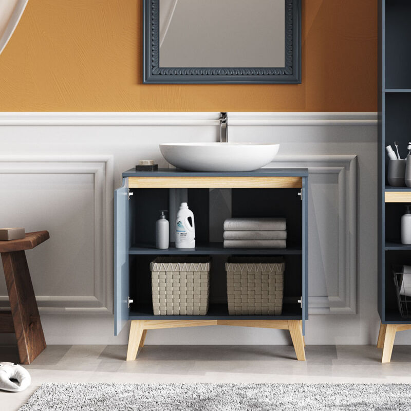 Wooden Bathroom Basin Under Sink Cabinet Storage Shelf Cupboard Vanity Unit Grey
