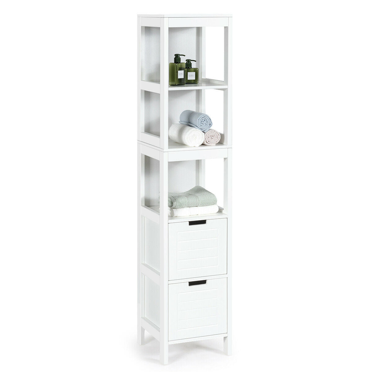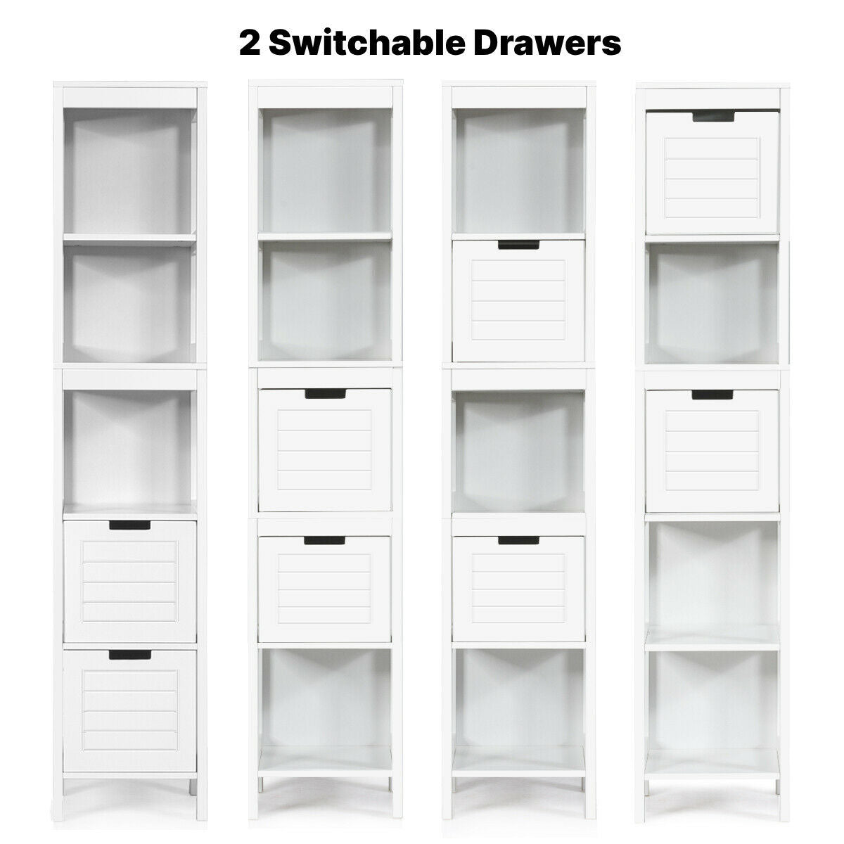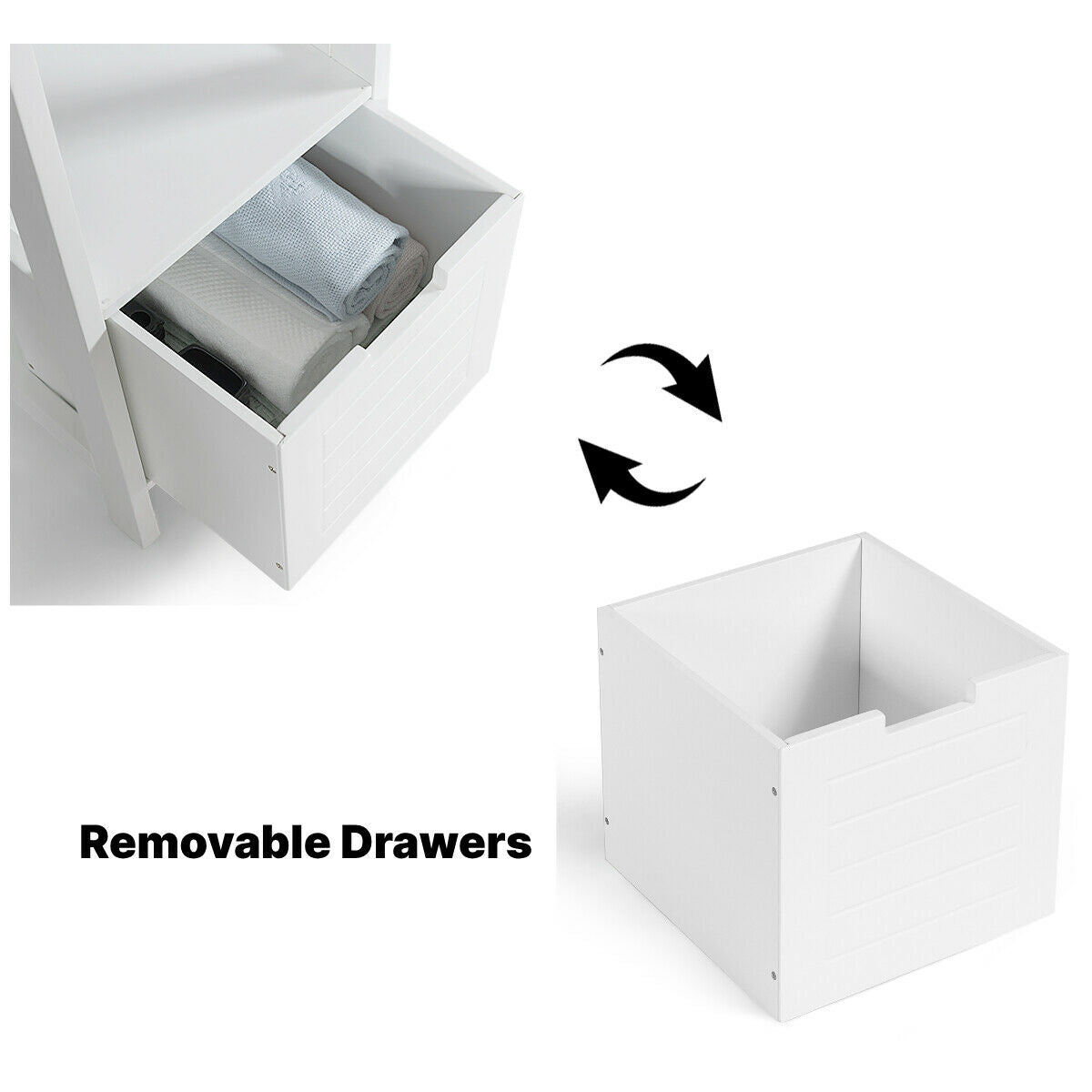 Wooden Bathroom Floor Cabinet Freestanding Cupboard Storage Organizer W/ Drawers