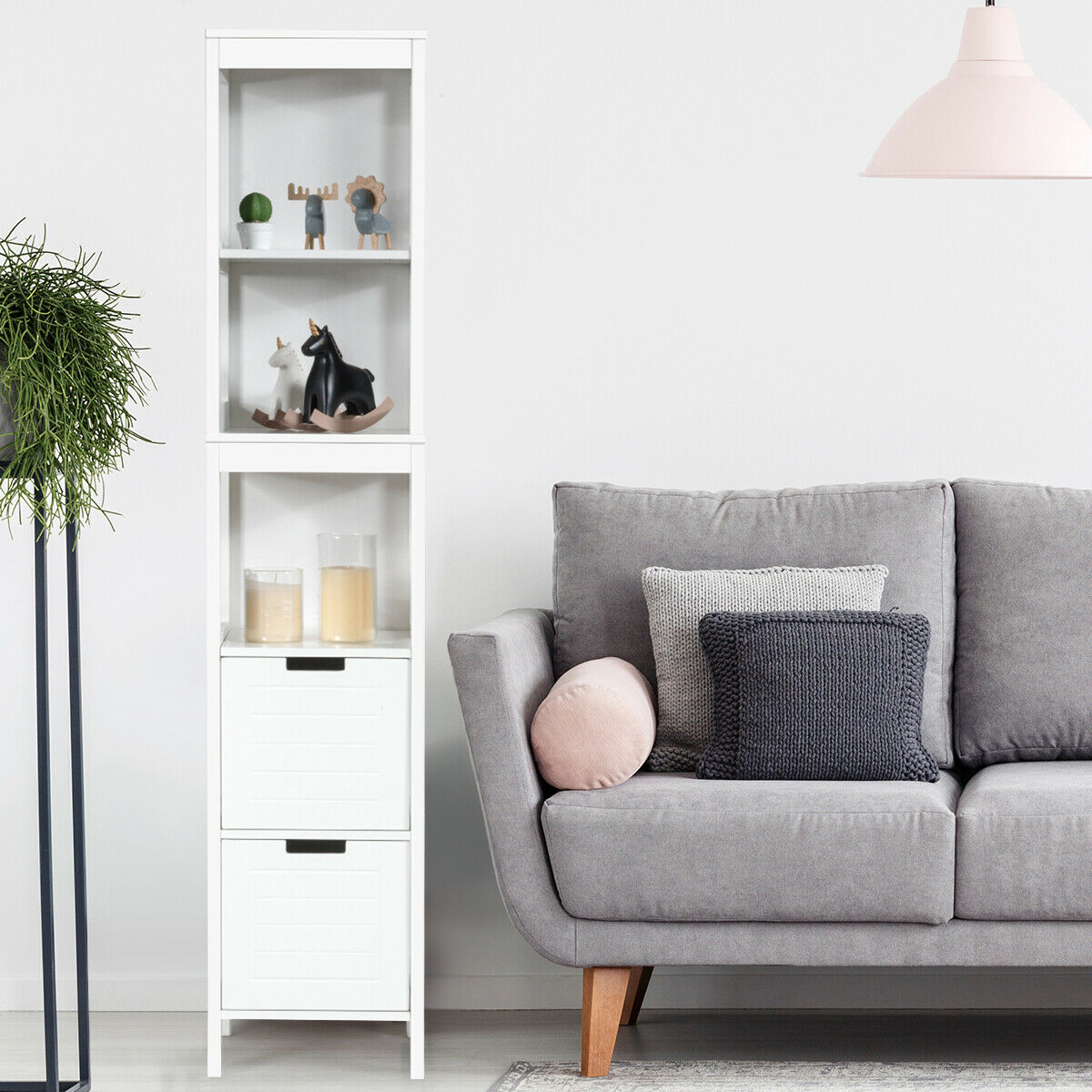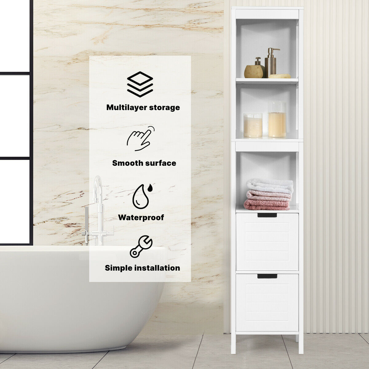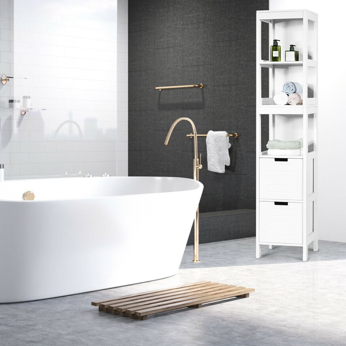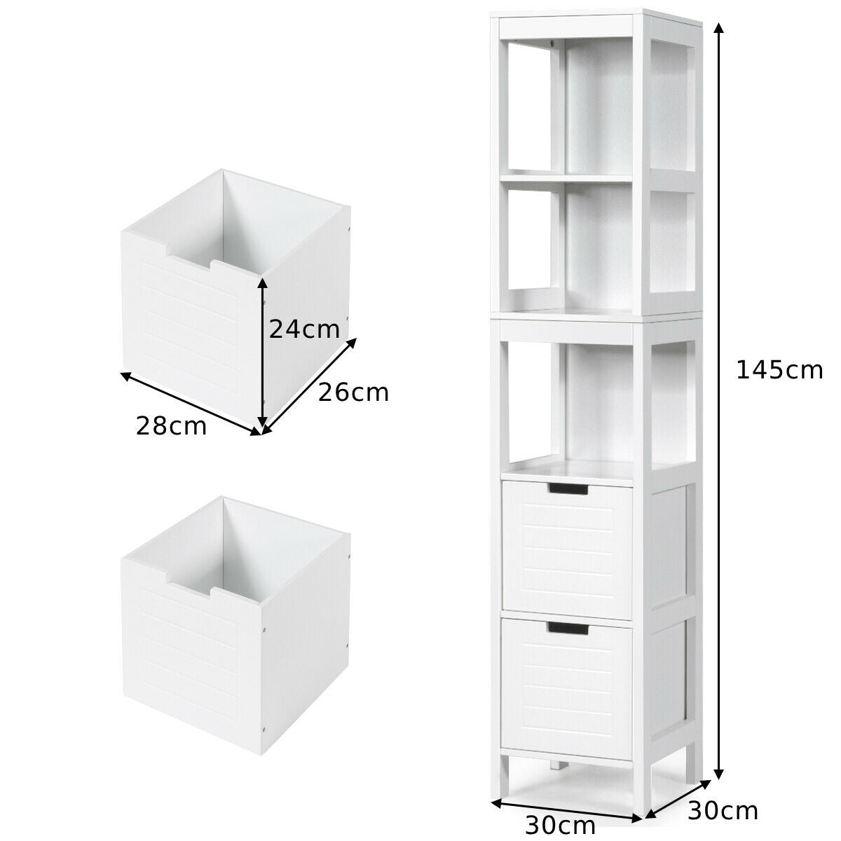 Wooden Bathroom Floor Cabinet Freestanding Cupboard Storage Organizer W/ Drawers