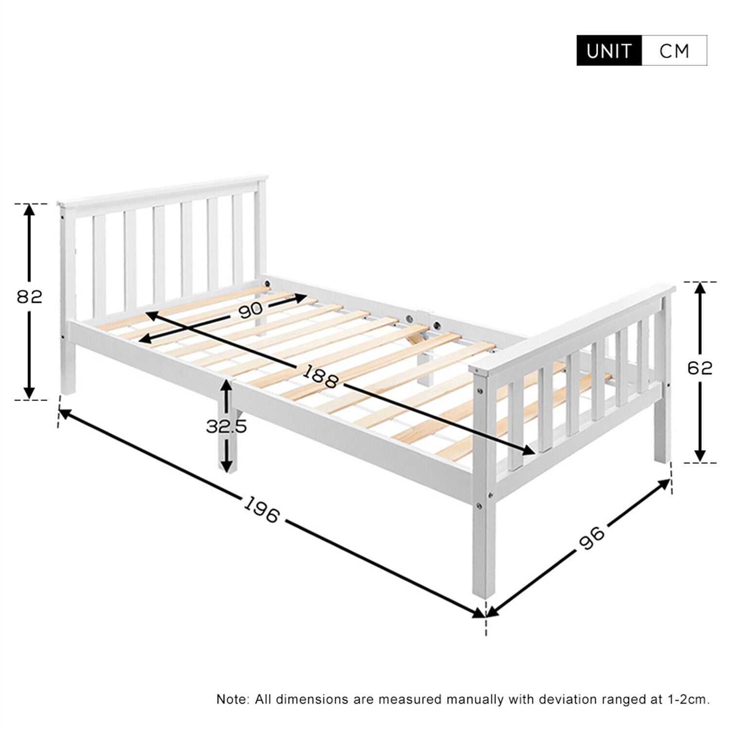 Wooden Bed 3ft Single Size Bed Soild Pine Wood Bed Frame for Adults, Kids White