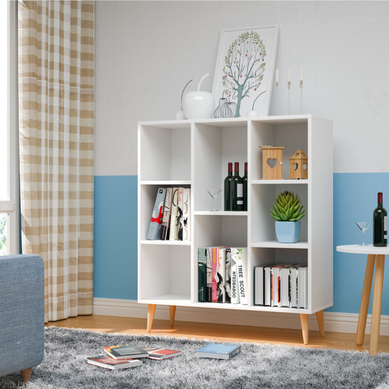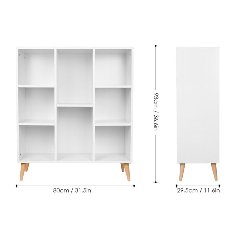 Wooden Bookcases 8 Cubes Storage Bookshelf White Living Room Shelving Unit