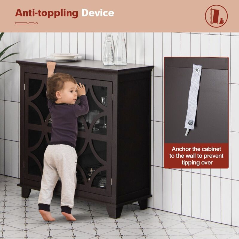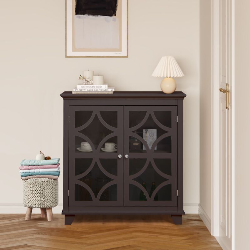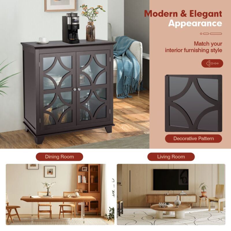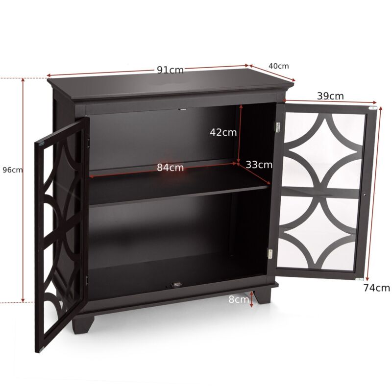 Wooden Buffet Cabinet Storage Sideboard Cupboard 2 Glass Doors Adjustable Shelf