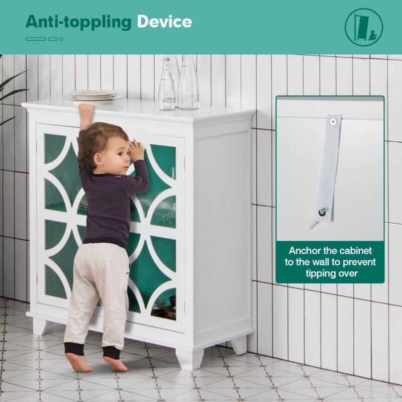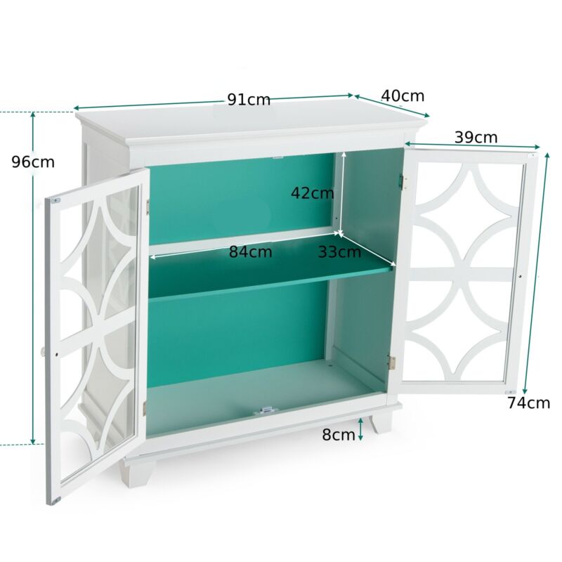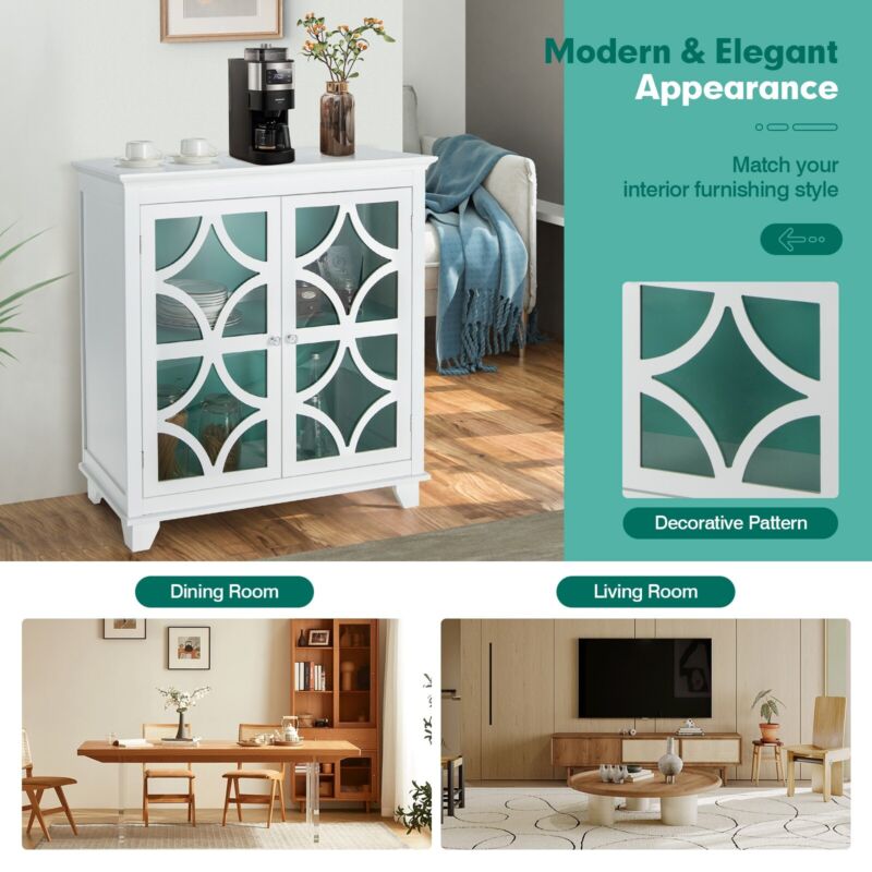 Wooden Buffet Cabinet Storage Sideboard Cupboard 2 Glass Doors Adjustable Shelf