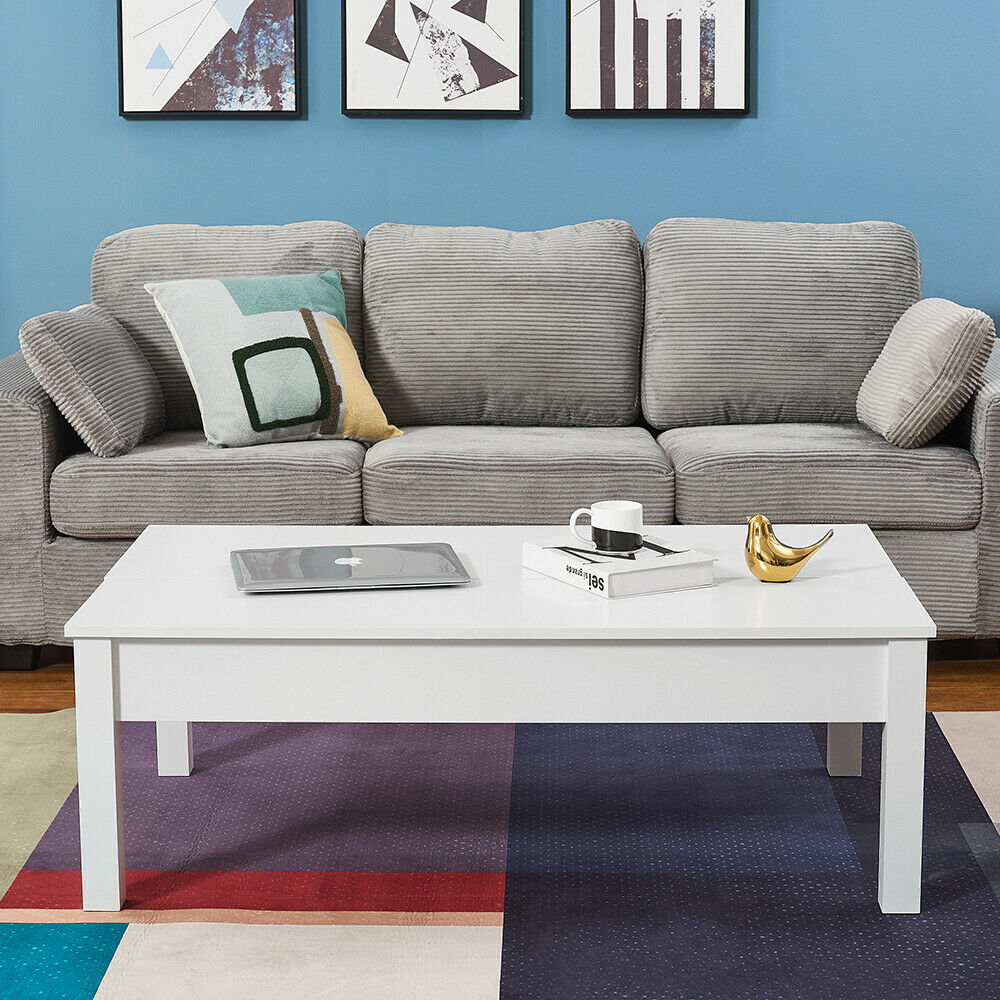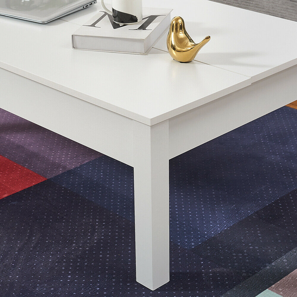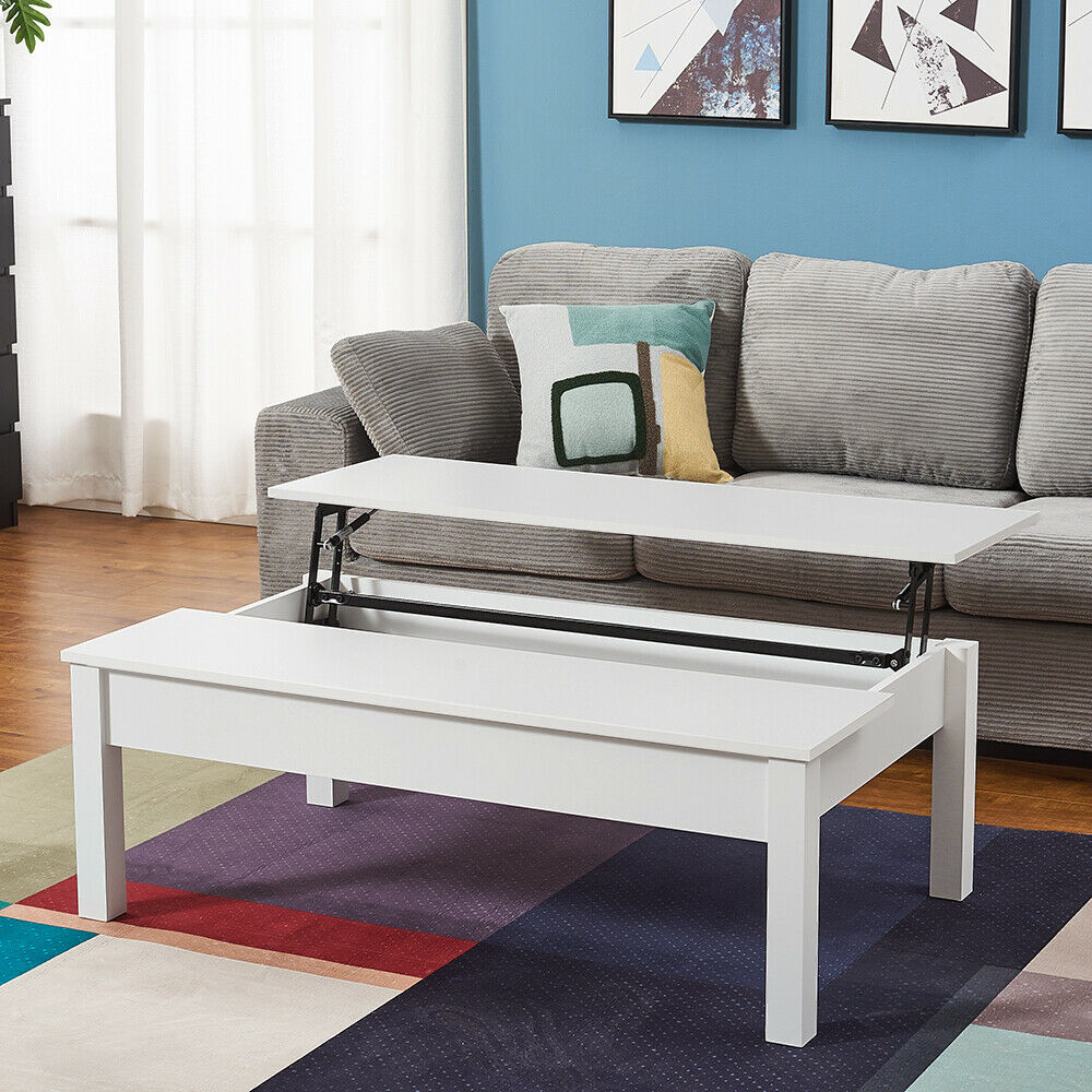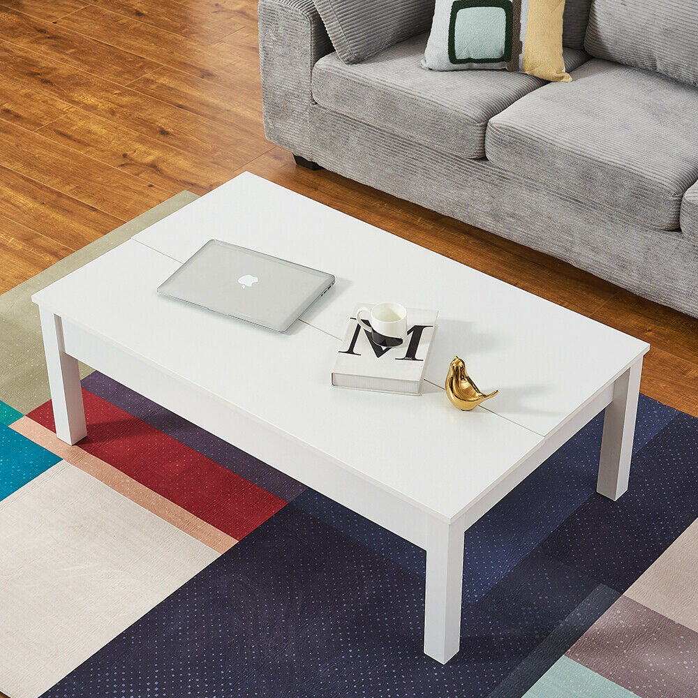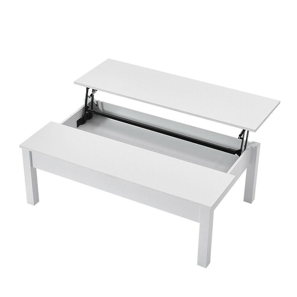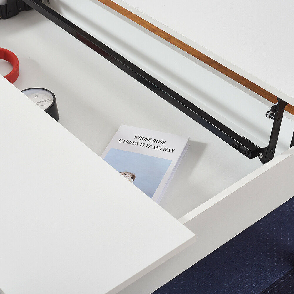 Wooden Coffee Table with Sliding Top Hidden Storage Half Lift Up Top Black/White
