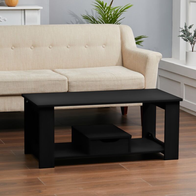 Wooden Coffee Tea Table with Storage Drawer Shelf Living Room Reception Table