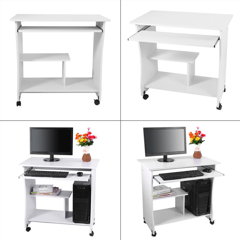 Wooden Computer Desk Study Workstation Laptop Table Storage with Keyboard Shelf