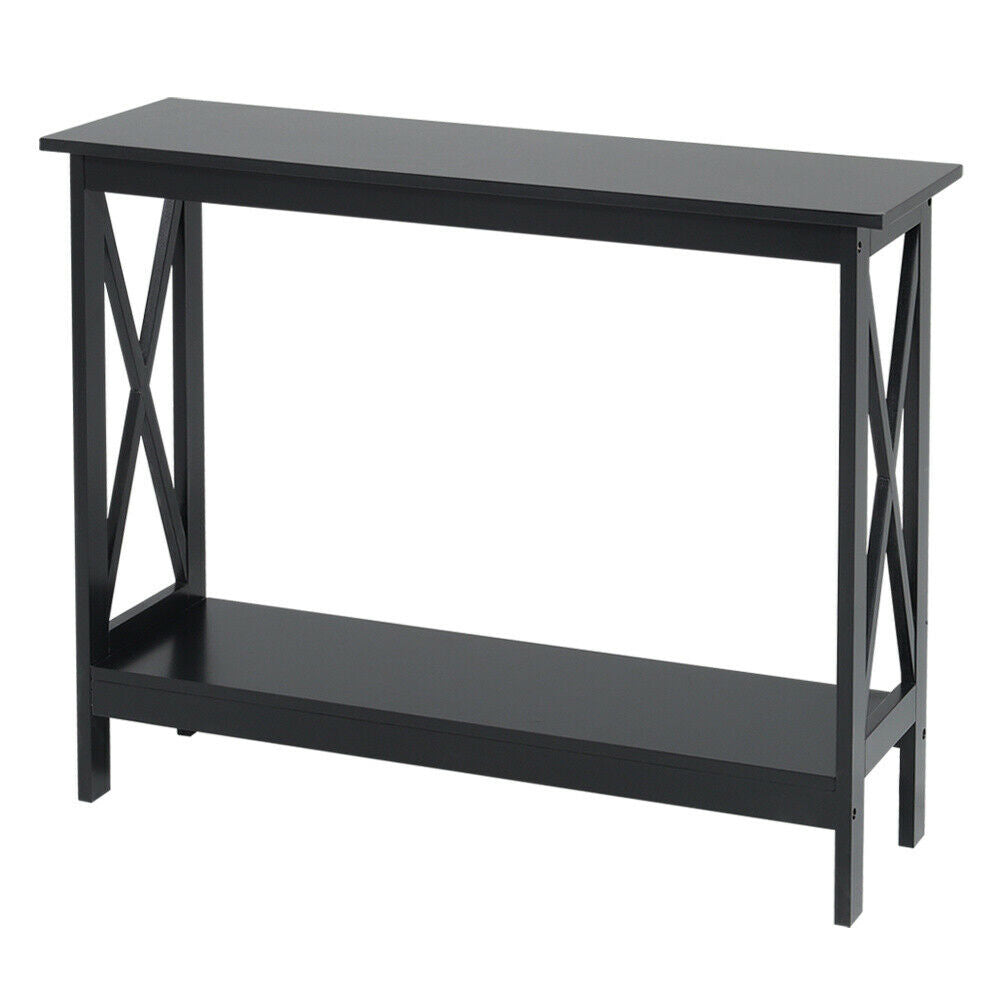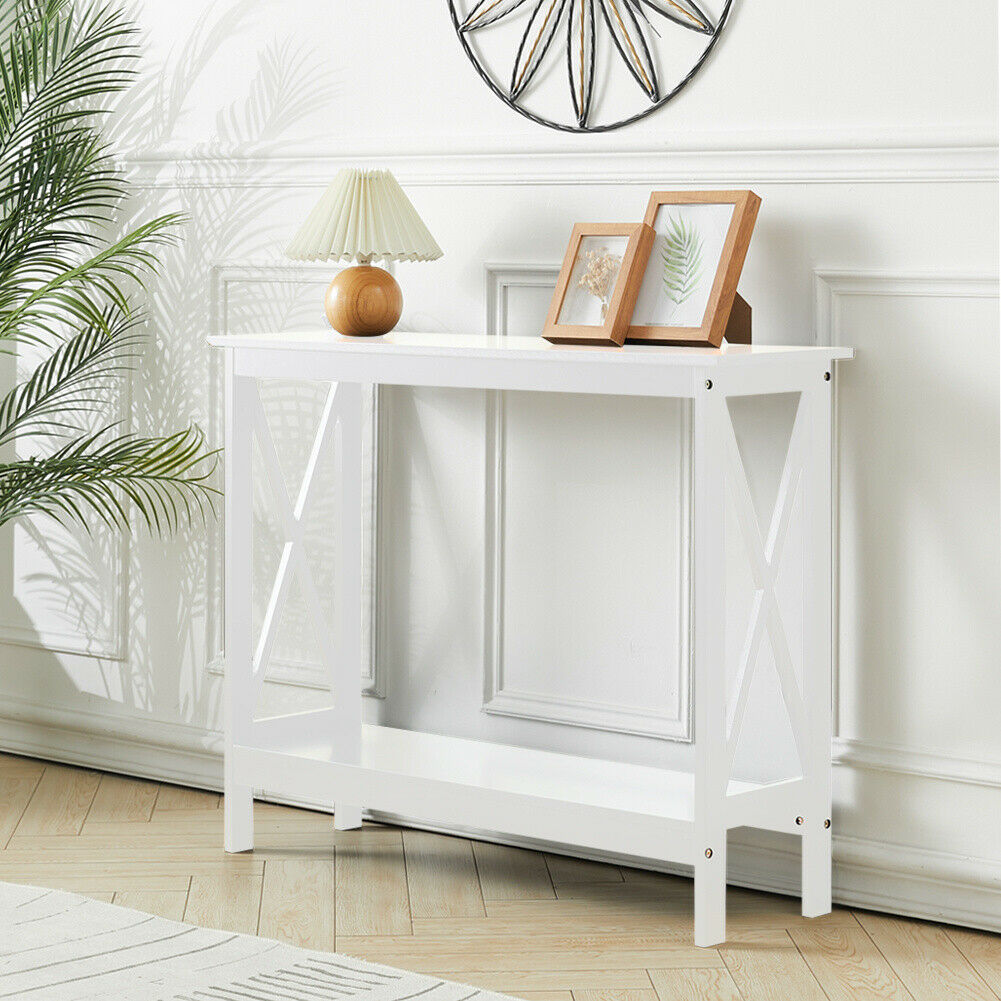 Wooden Console Table 2 Tier Hallway Living Room Side Table Storage Bottom Shelf