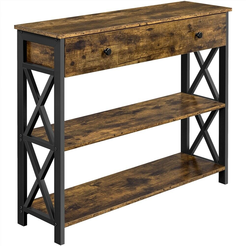 Wooden Console Table with 1 Drawer and 2 Open Shelves Versatile Entryway Table
