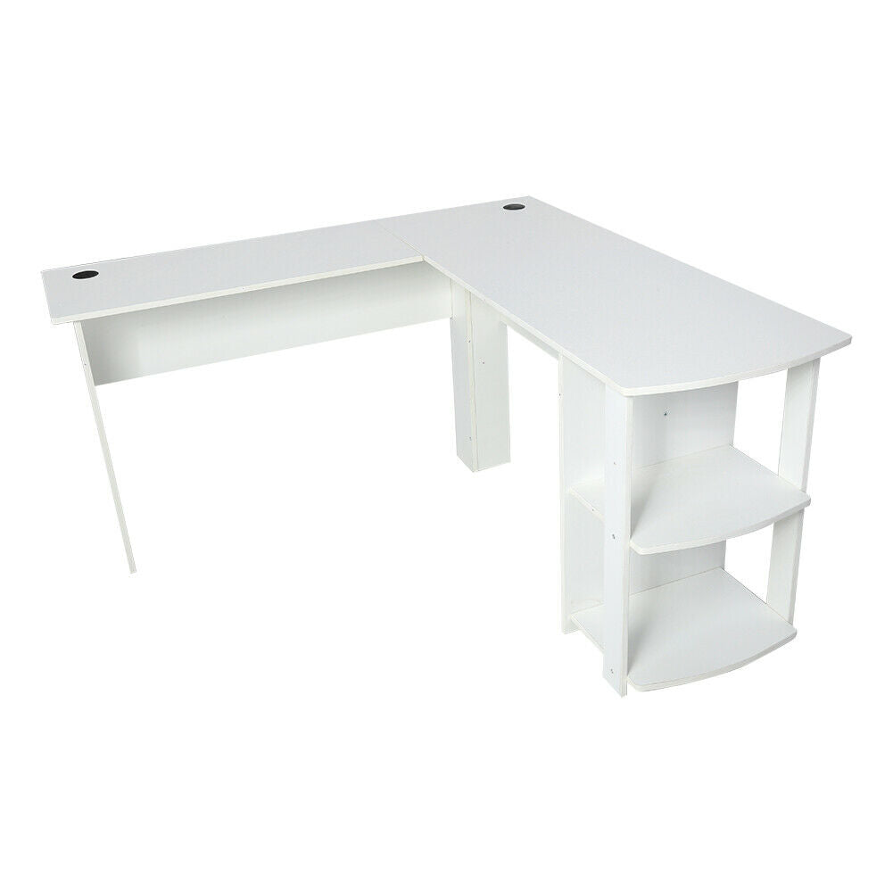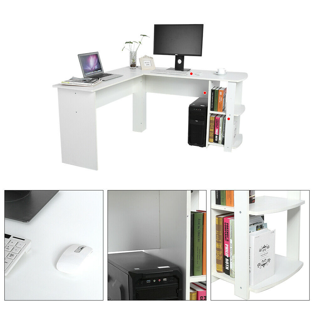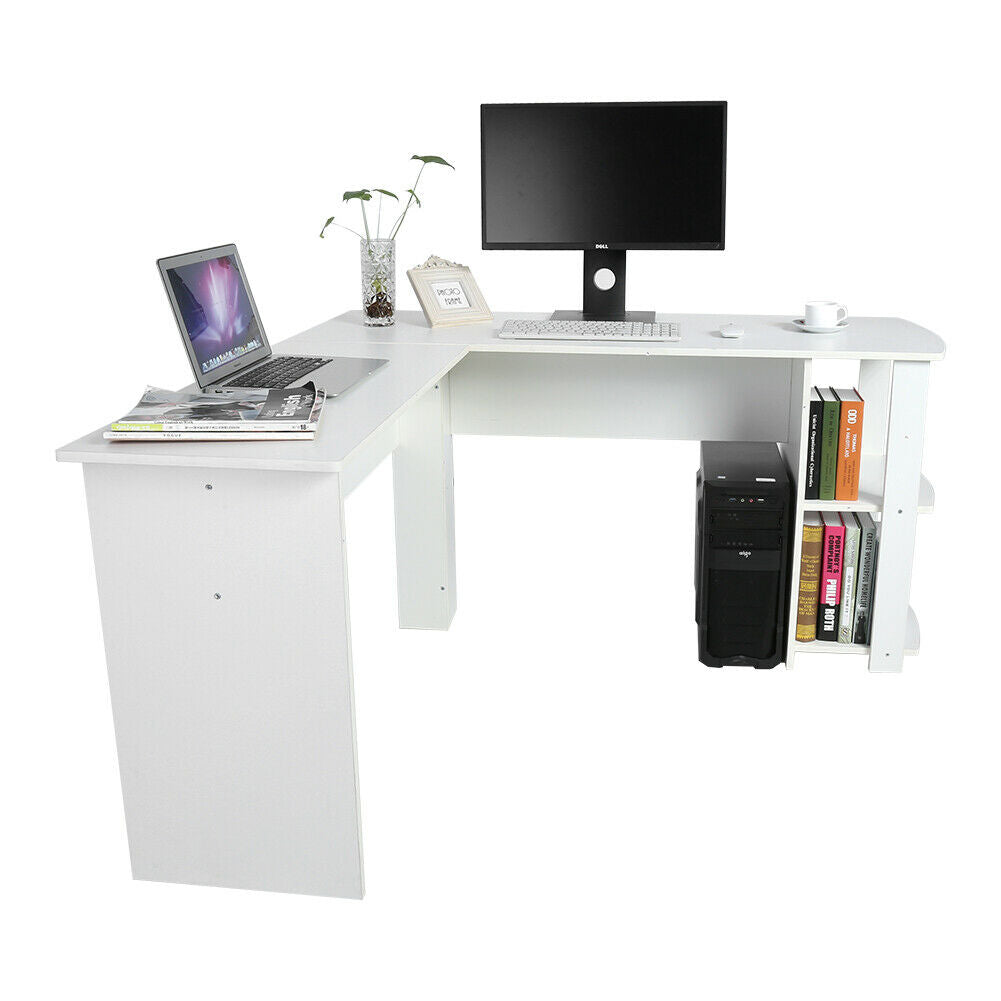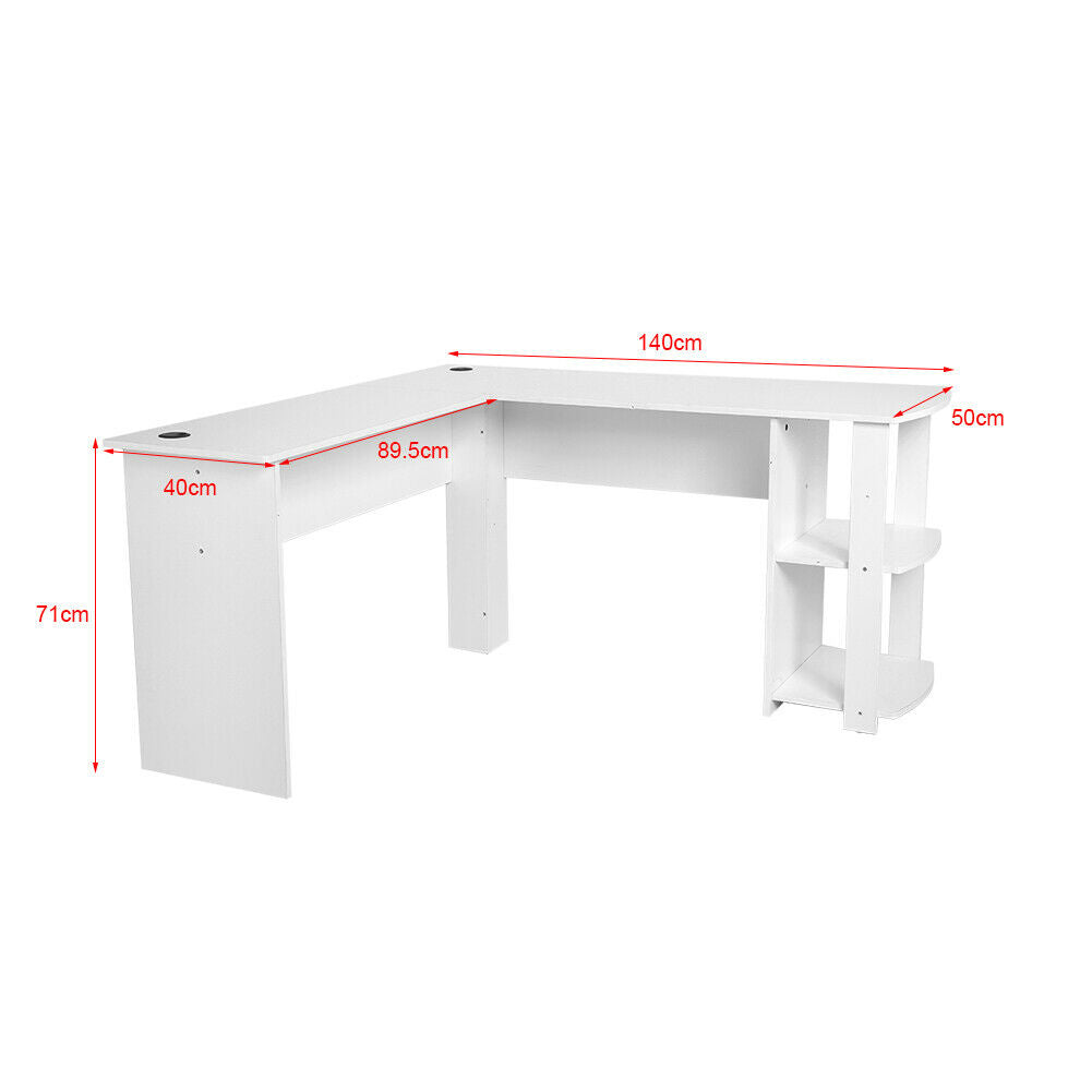 Wooden Corner Computer Desk Home Office L-Shaped Study Gaming Table With Shelves