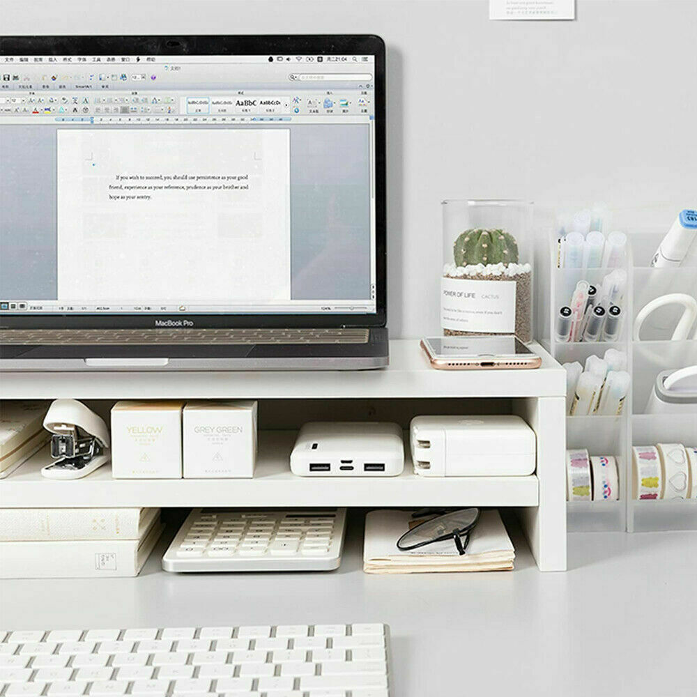 Wooden Desktop Monitor Stand Rack Laptop Computer Screen Riser Home Office
