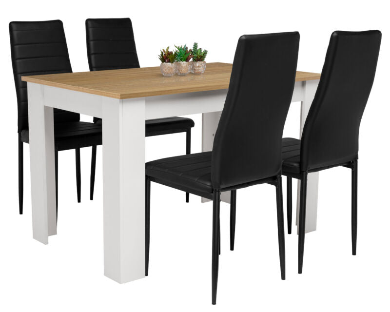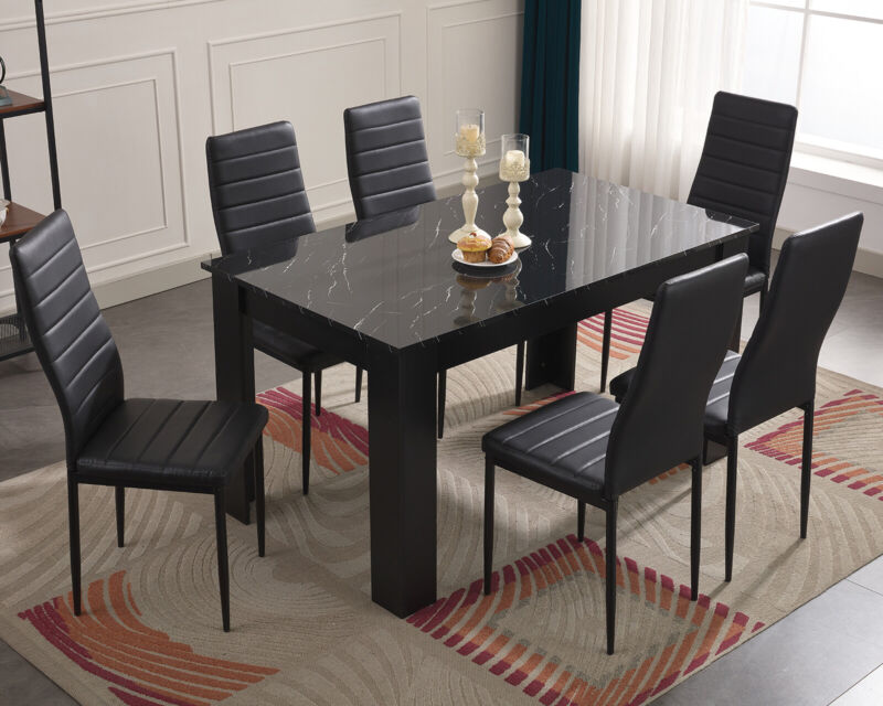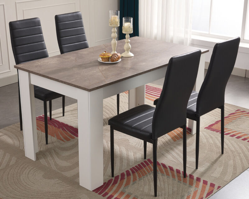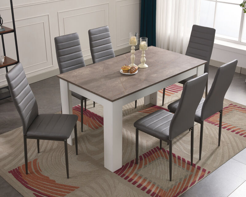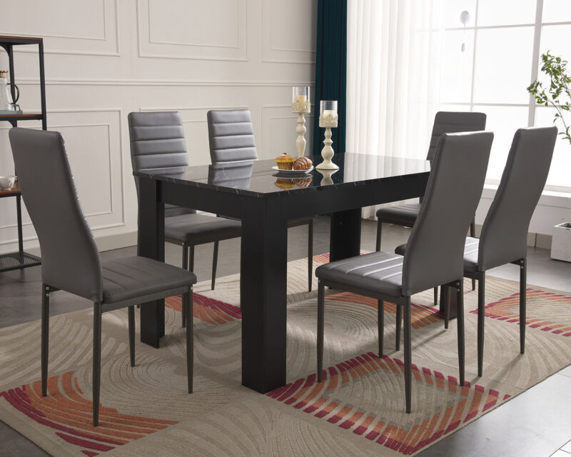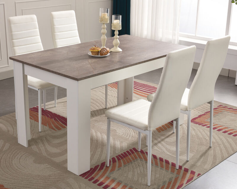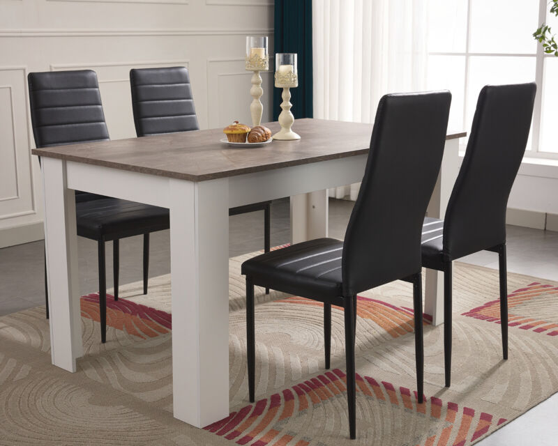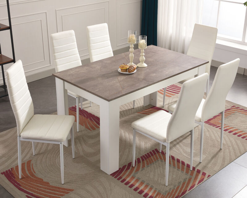 - Wooden Dining Table and Chairs 4 / 6 Set Pu Leather Seat Kitchen Room Furniture