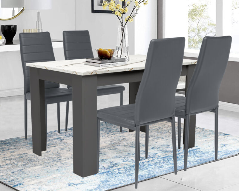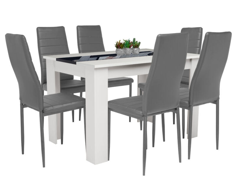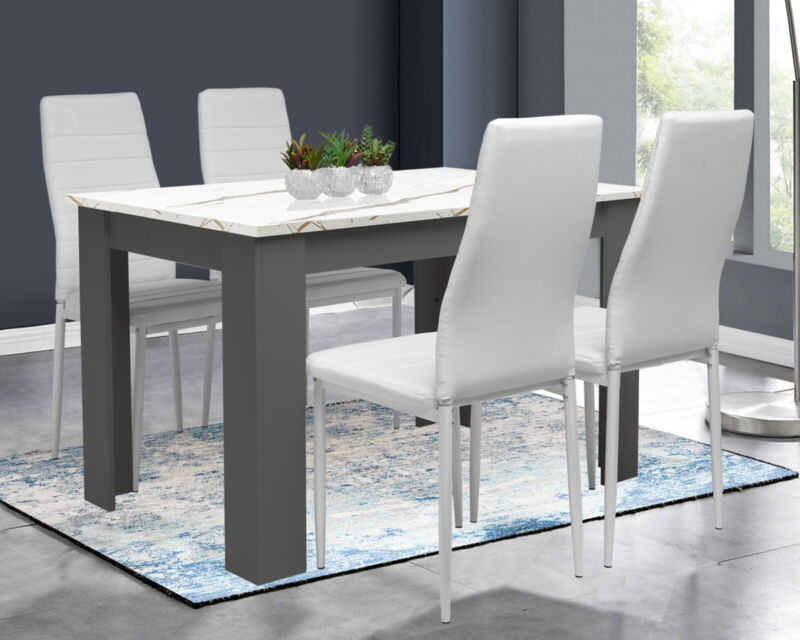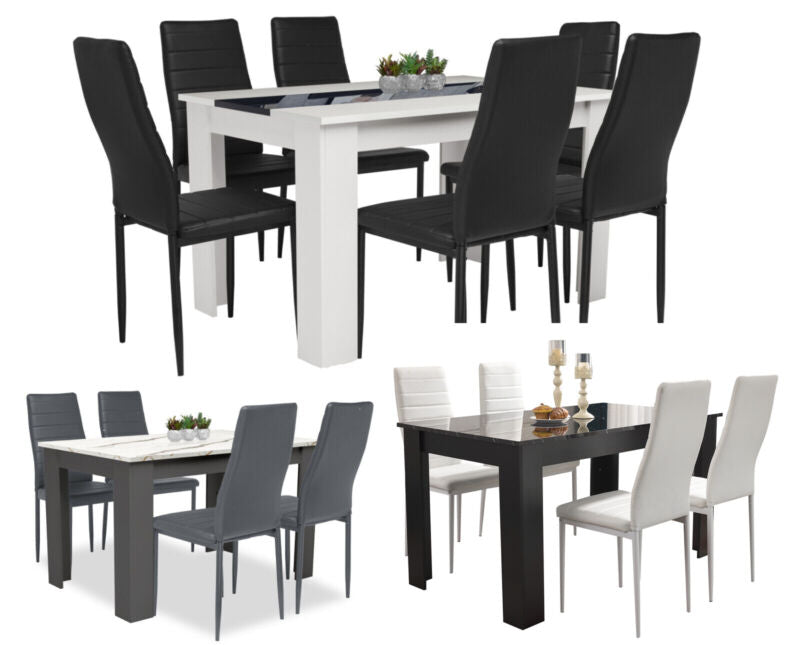 Wooden Dining Table and Chairs 4 / 6 Set Pu Leather Seat Kitchen Room Furniture