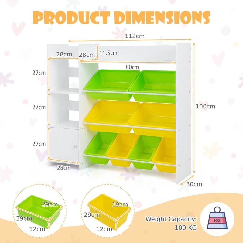 Wooden Kids Toy Storage Organizer Bookcase Cabinet Bookshelf W/ 8 Storage Boxes