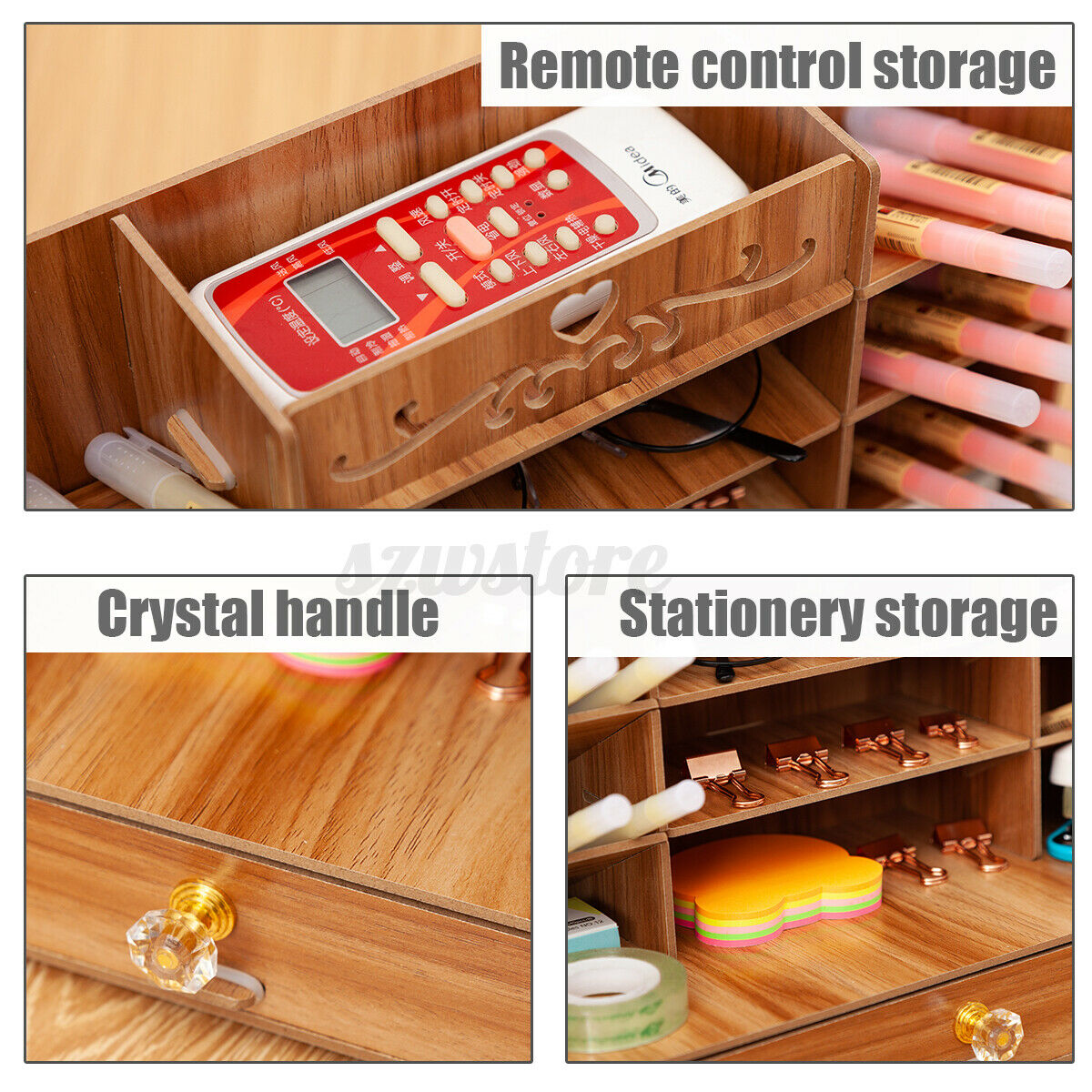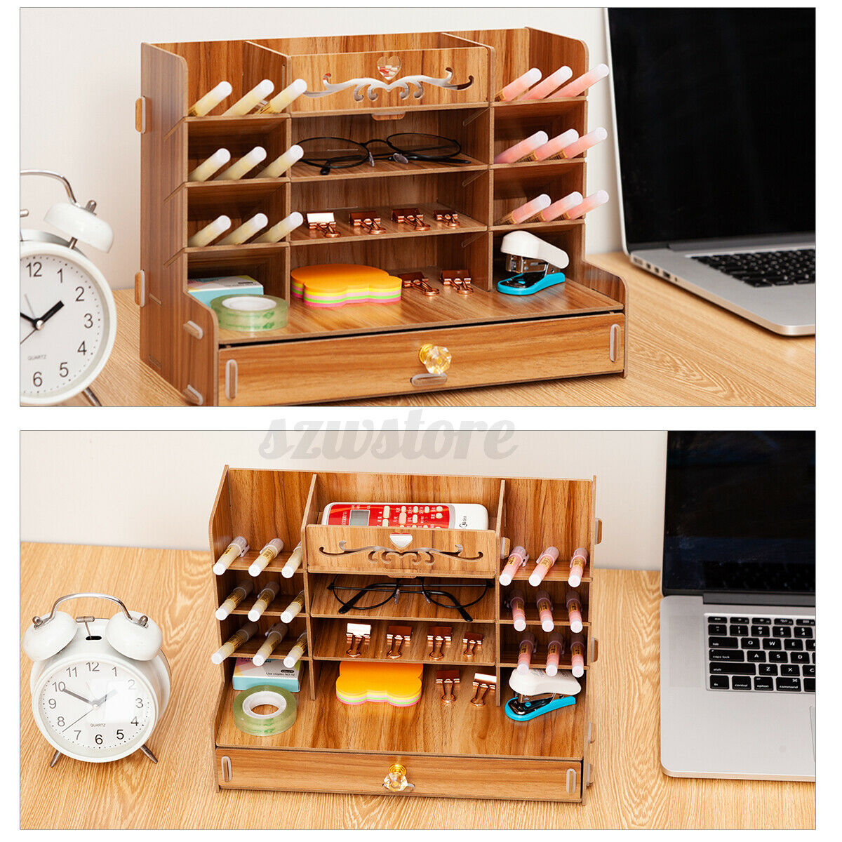 Wooden Pen Pencil Storage Holder Organizer Office Desk Tidy Case & Large