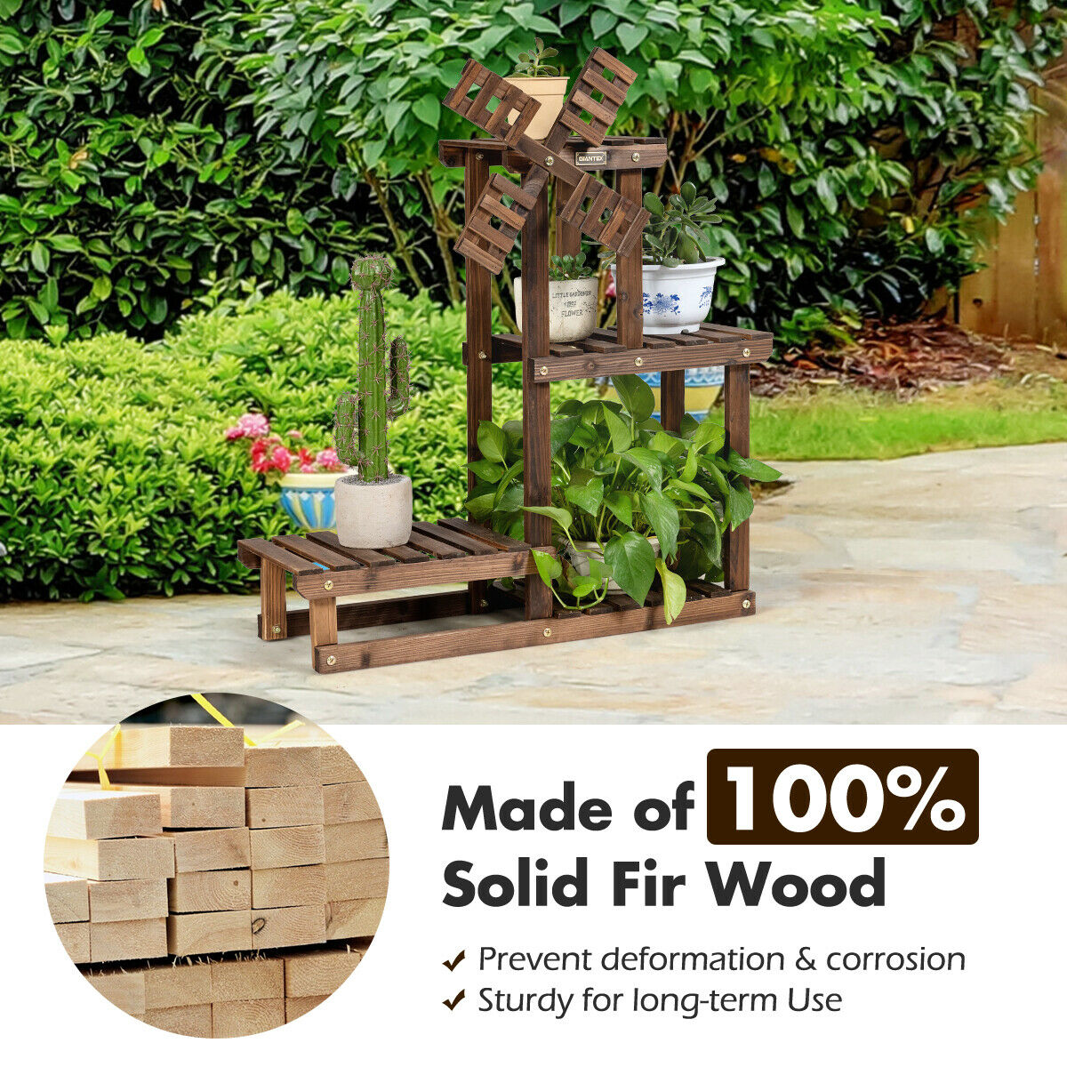 Wooden Plant Flower Display Stand 4-Tier Flower Rack 5 Pots Storage Shelf