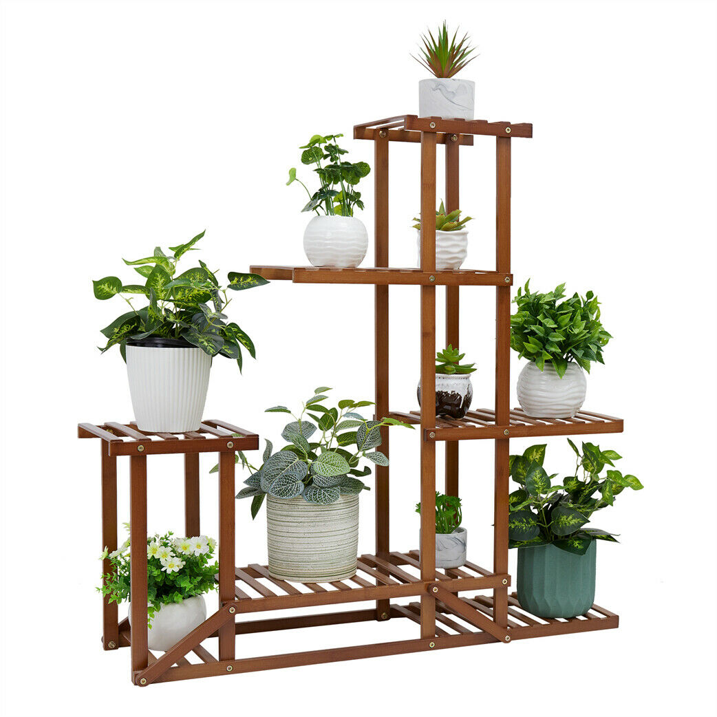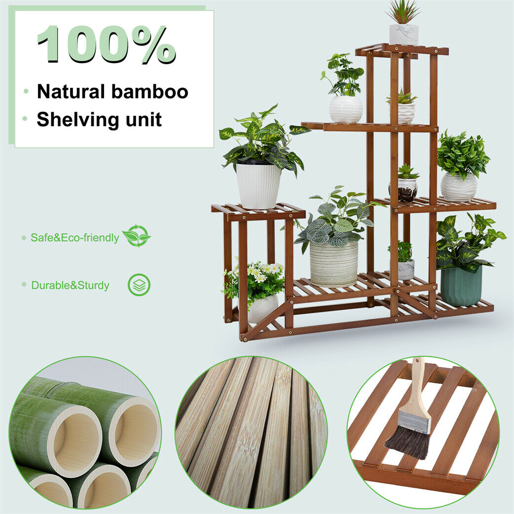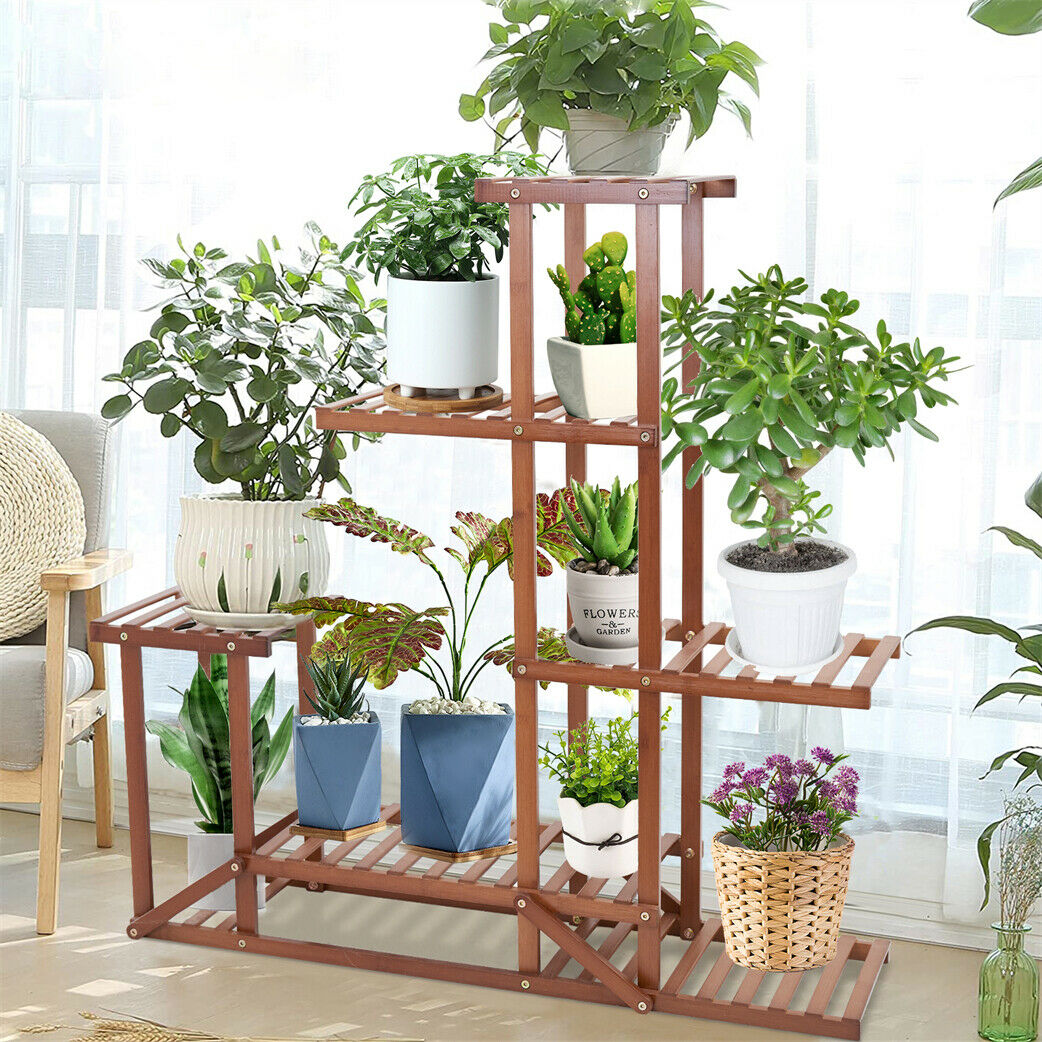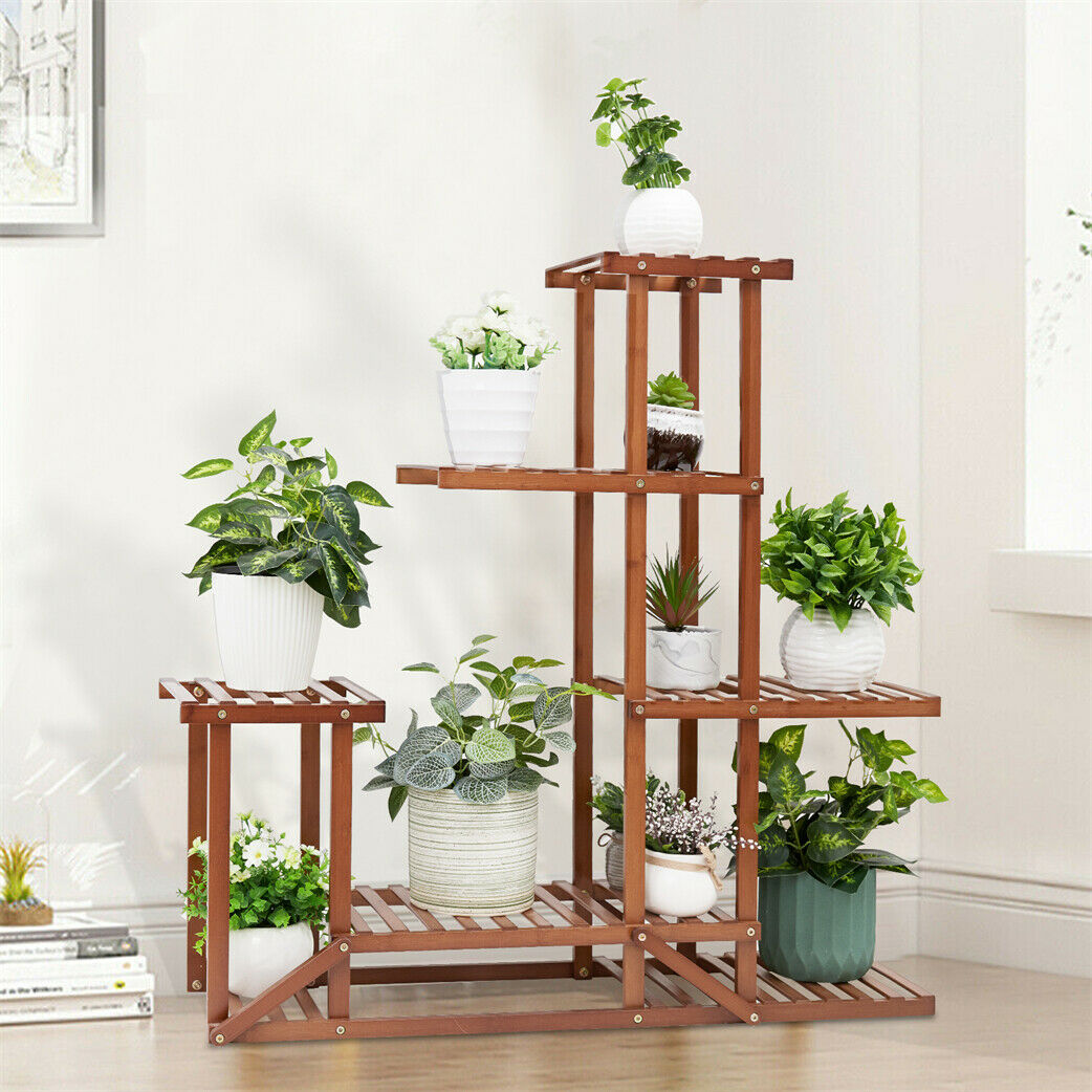 Wooden Plant Shelf Ladder Style Flower Pots Corner Stand Storage Unit In/Outdoor